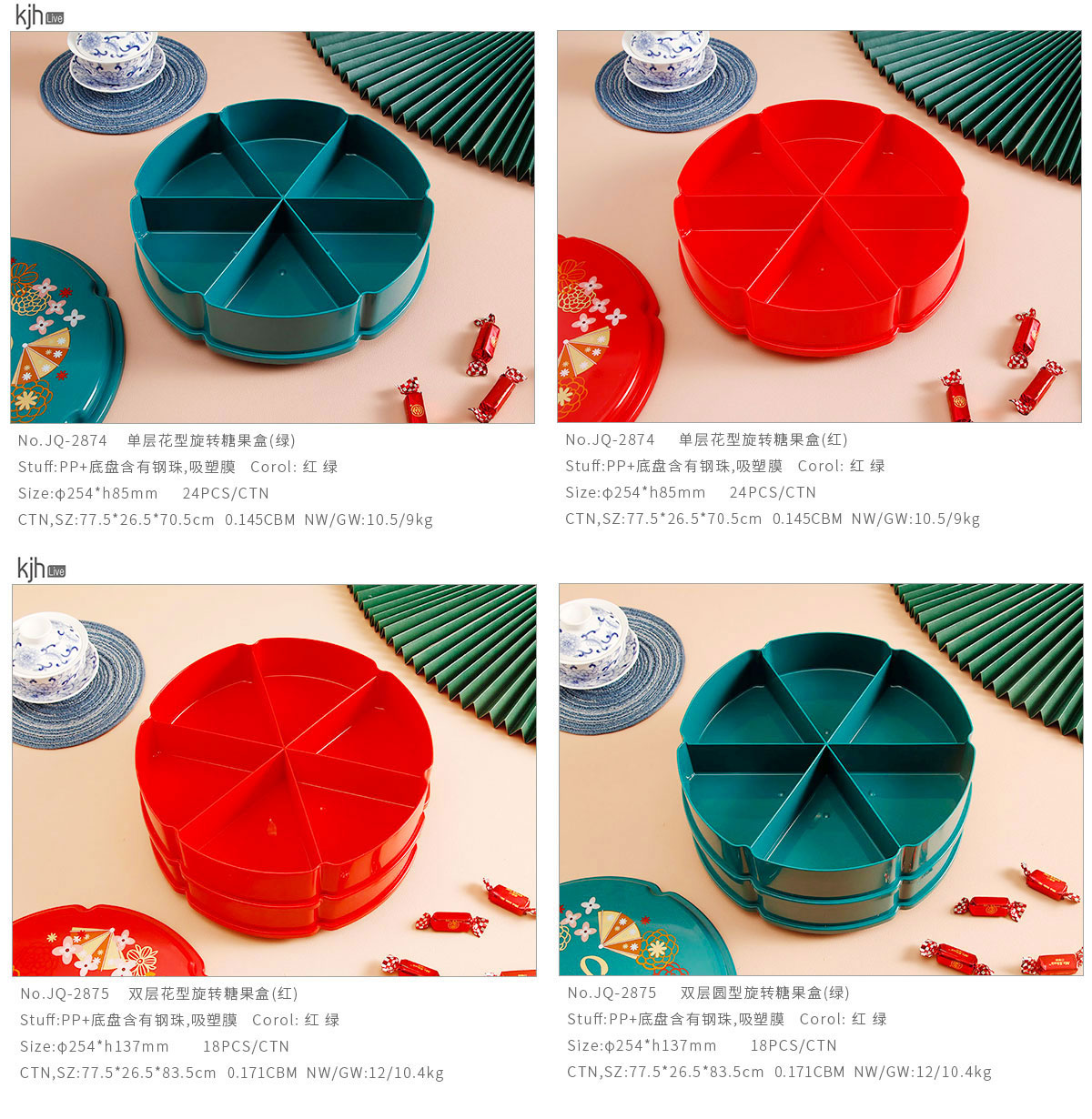 單層/雙層圓型/花型旋轉(zhuǎn)糖果盒  紅色/綠色