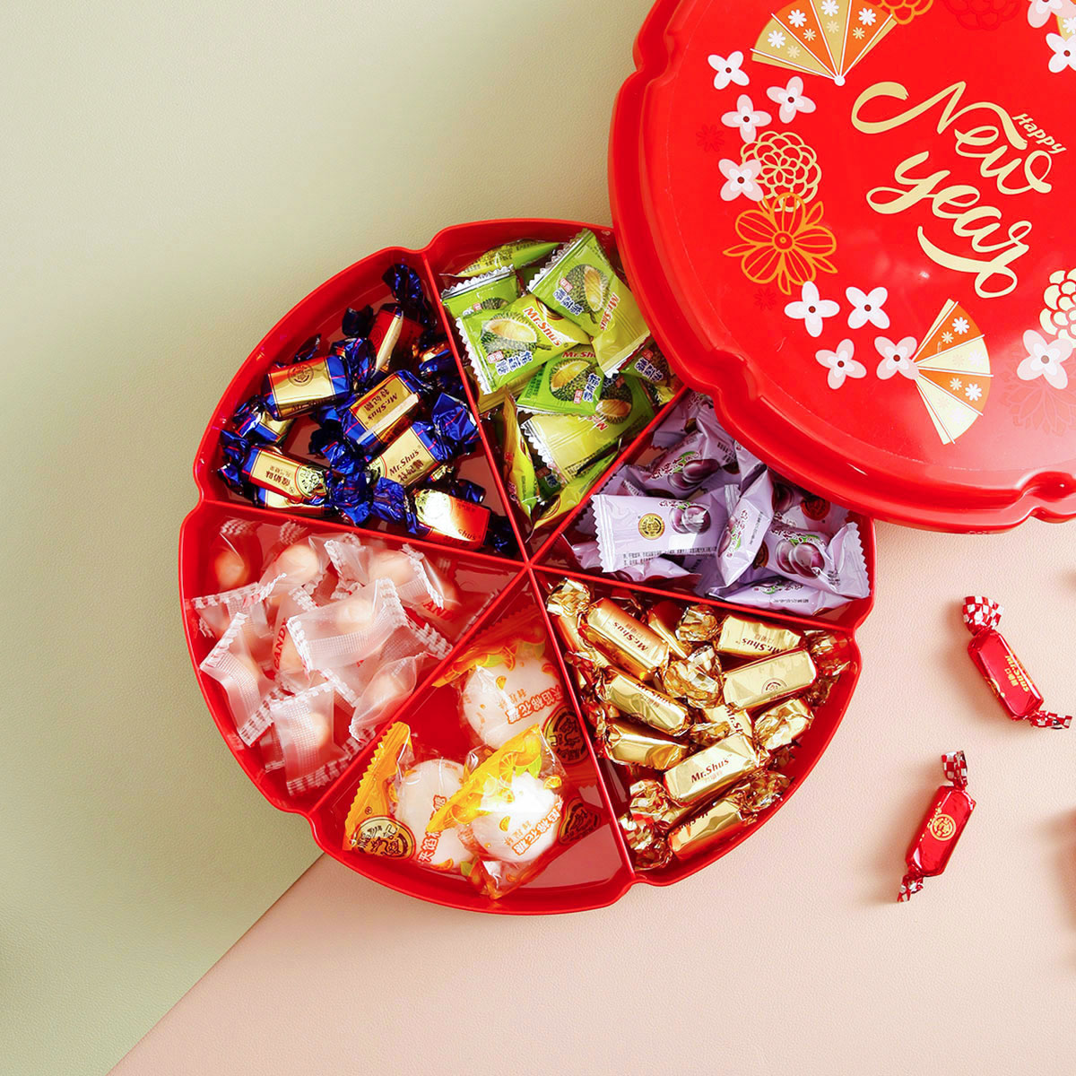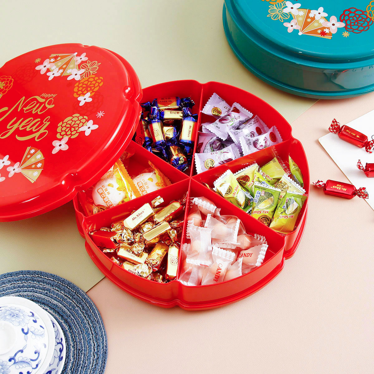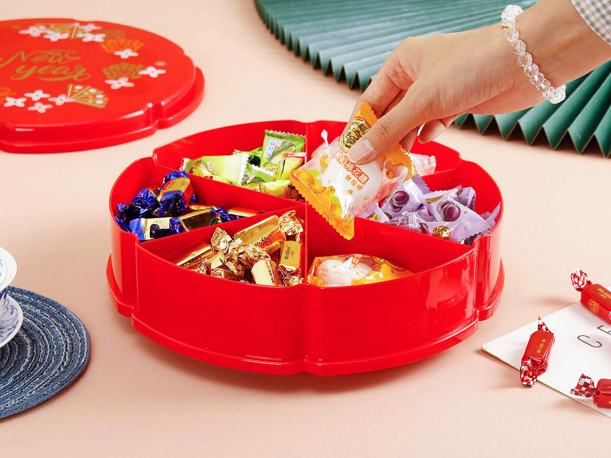 單層/雙層圓型/花型旋轉(zhuǎn)糖果盒 紅色/綠色