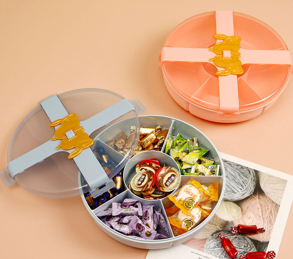 小號(hào)/大號(hào)金兔糖果盒 (淺藍(lán)/淺粉)