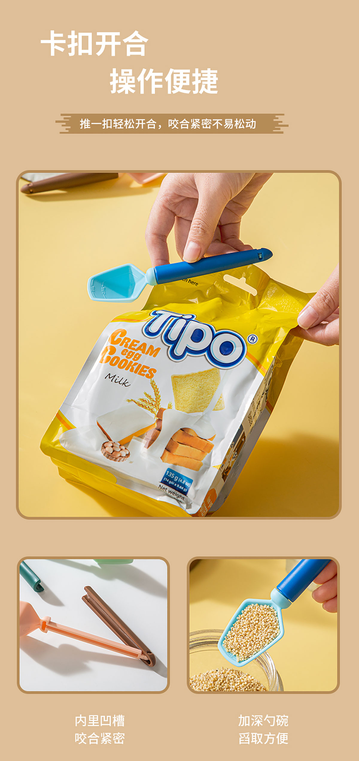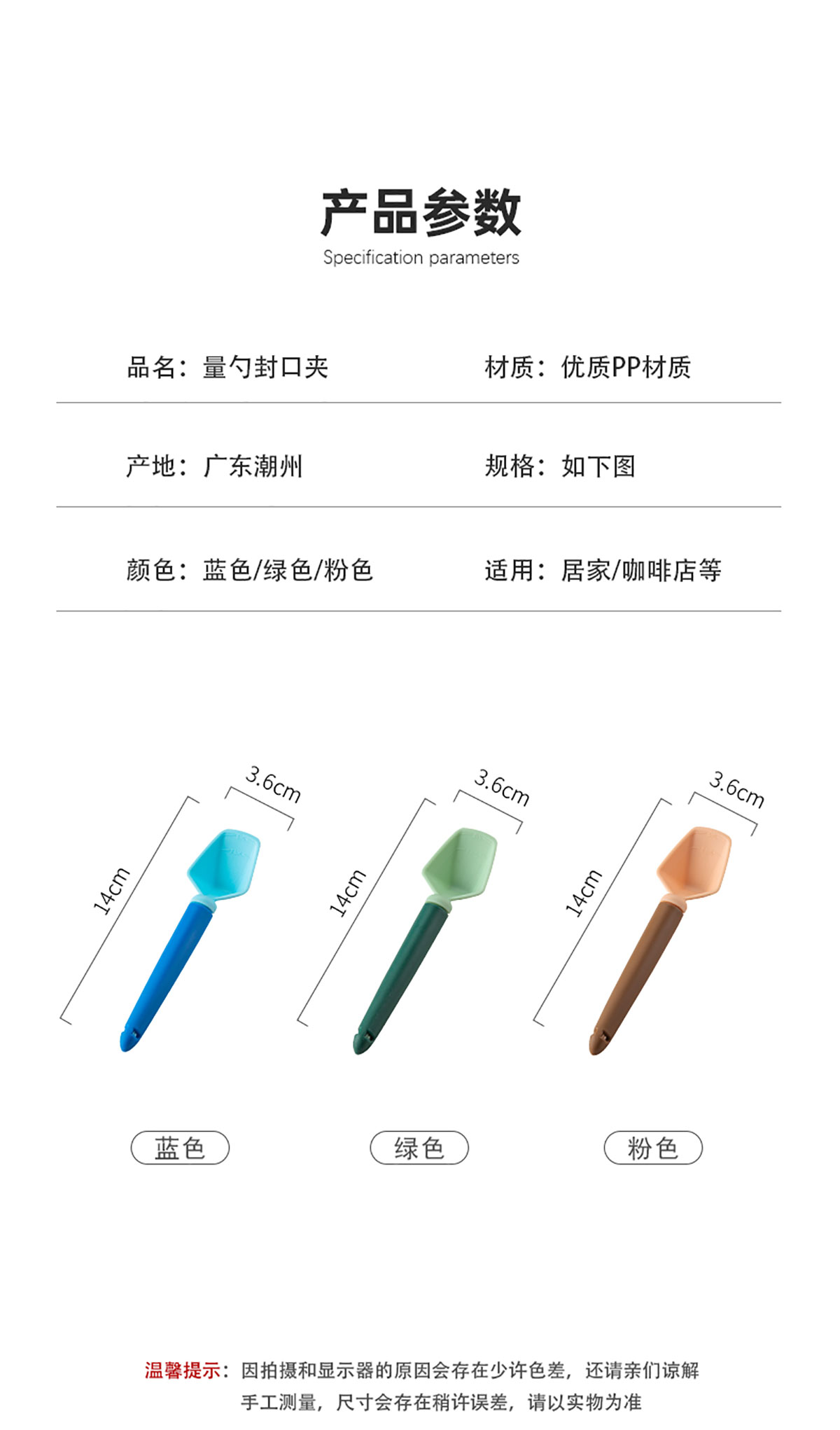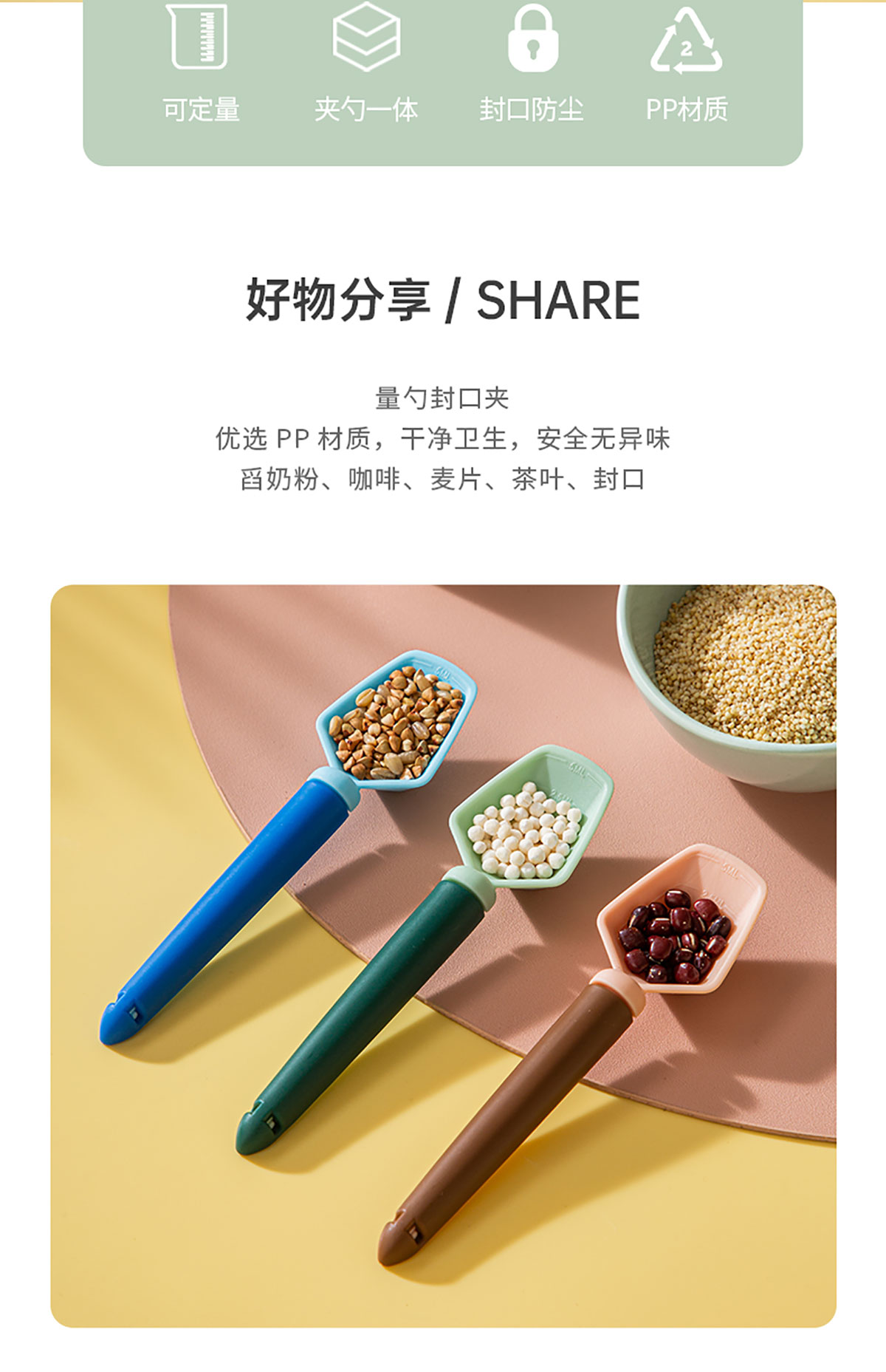 量勺封口夾 粉色/藍(lán)色/綠色款