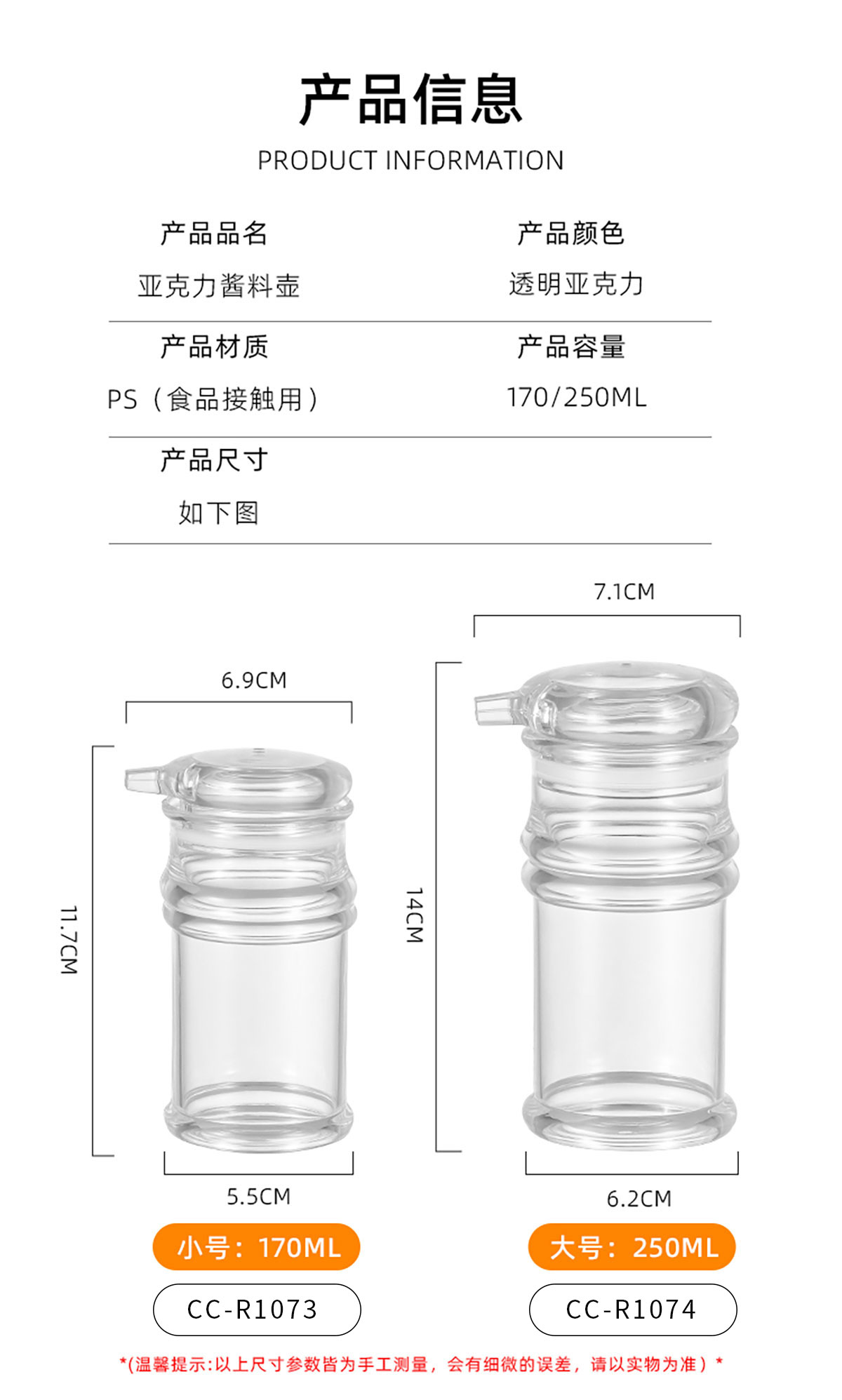 Size: CC-R1073:69*55*117mm/170ml