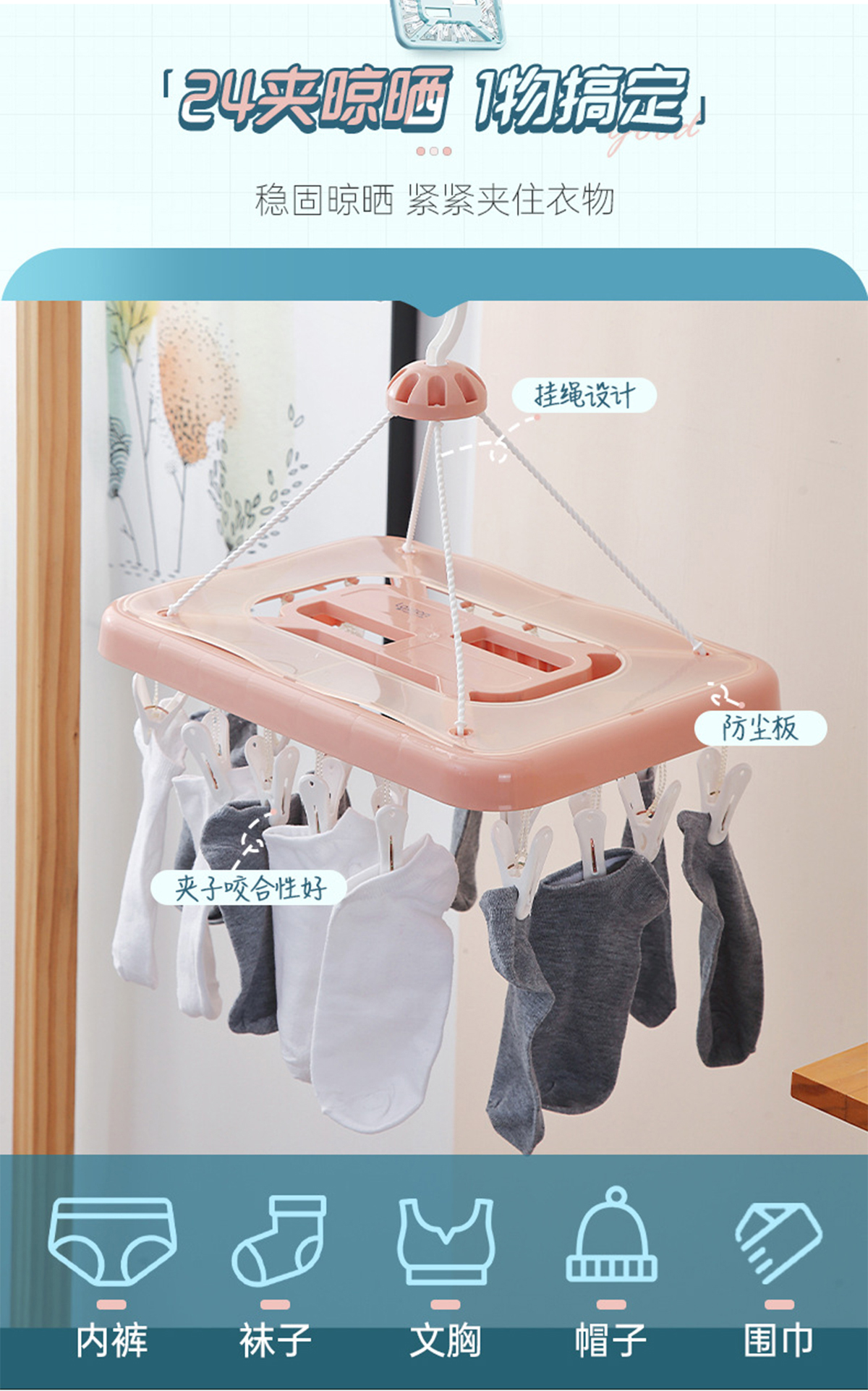 晶彩長方形24夾晾衣架 2023年新色