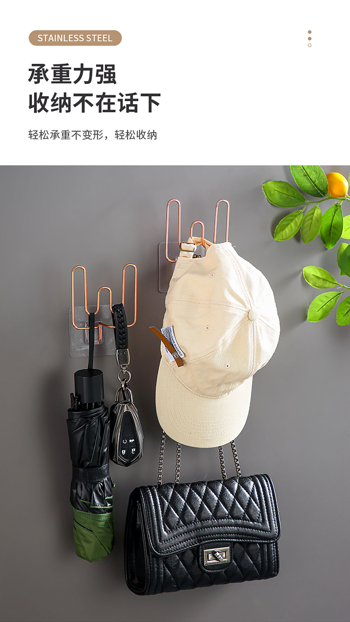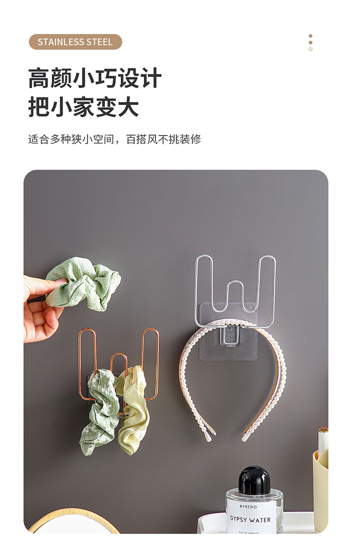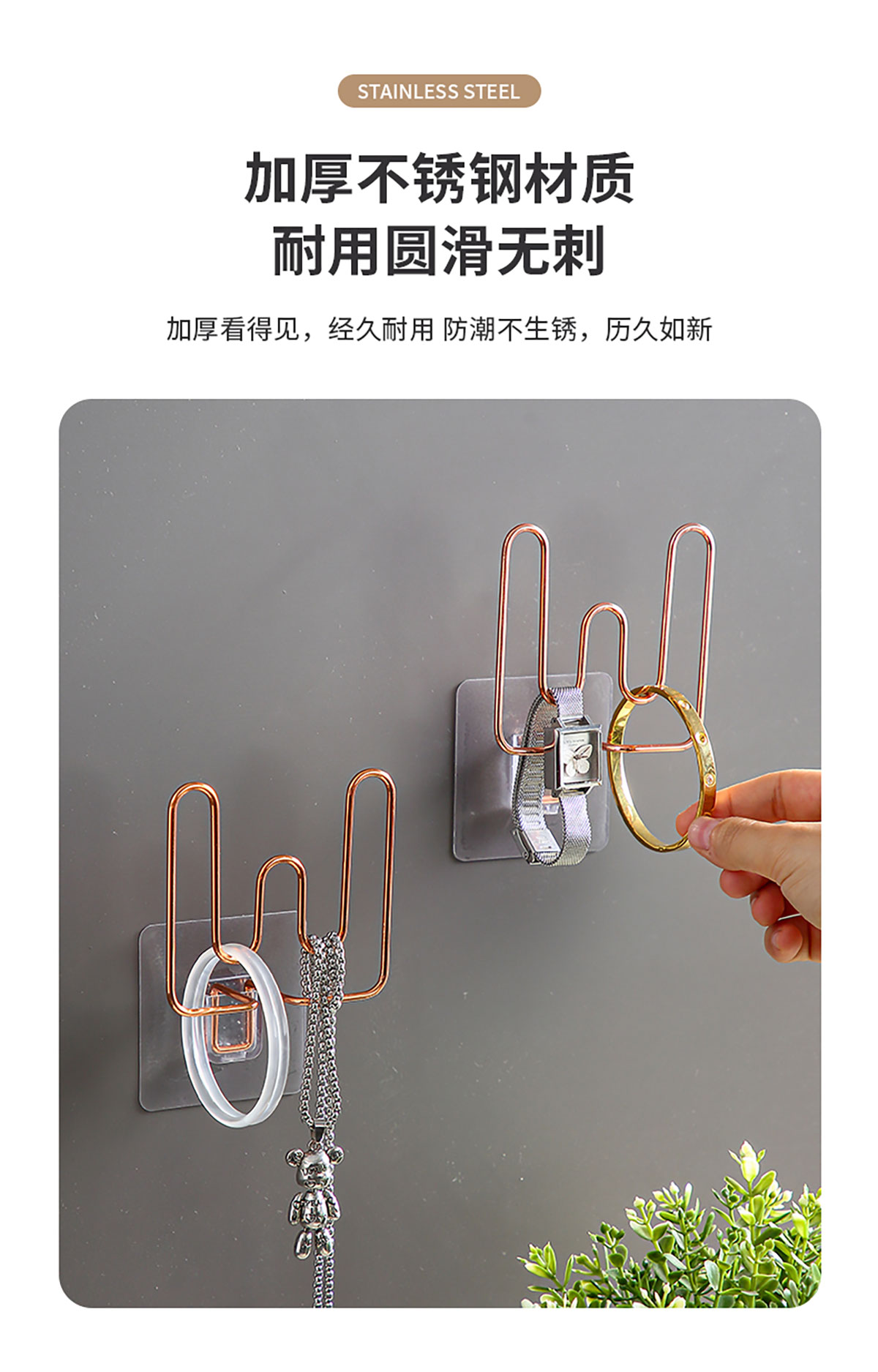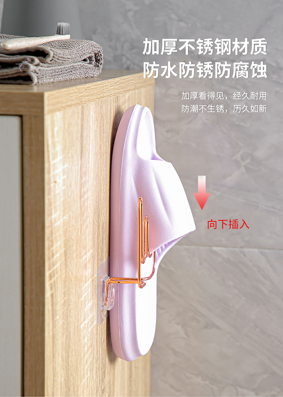 不銹鋼多功能掛鉤(可掛拖鞋/發(fā)捆頭飾等)