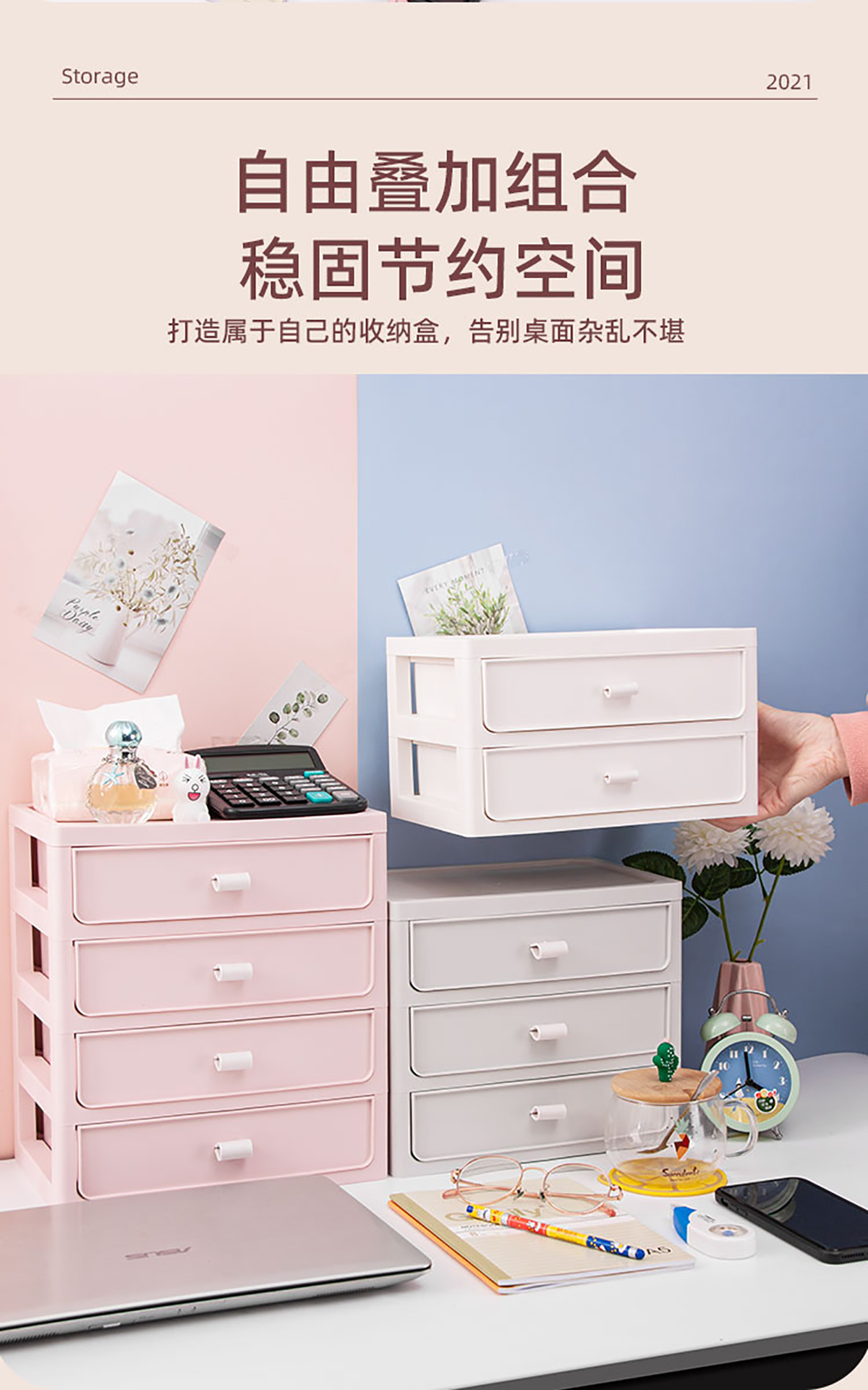 桌面收納柜(二/三/四層)+化妝品收納盒 實(shí)色款