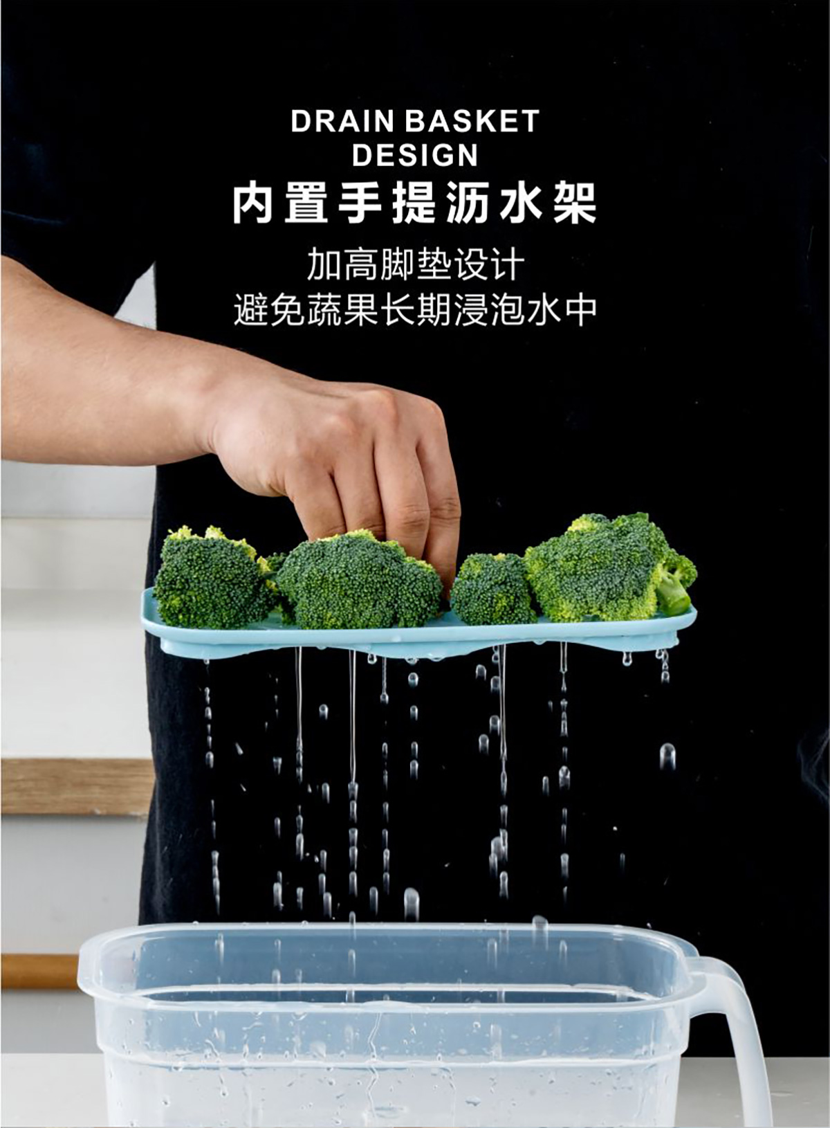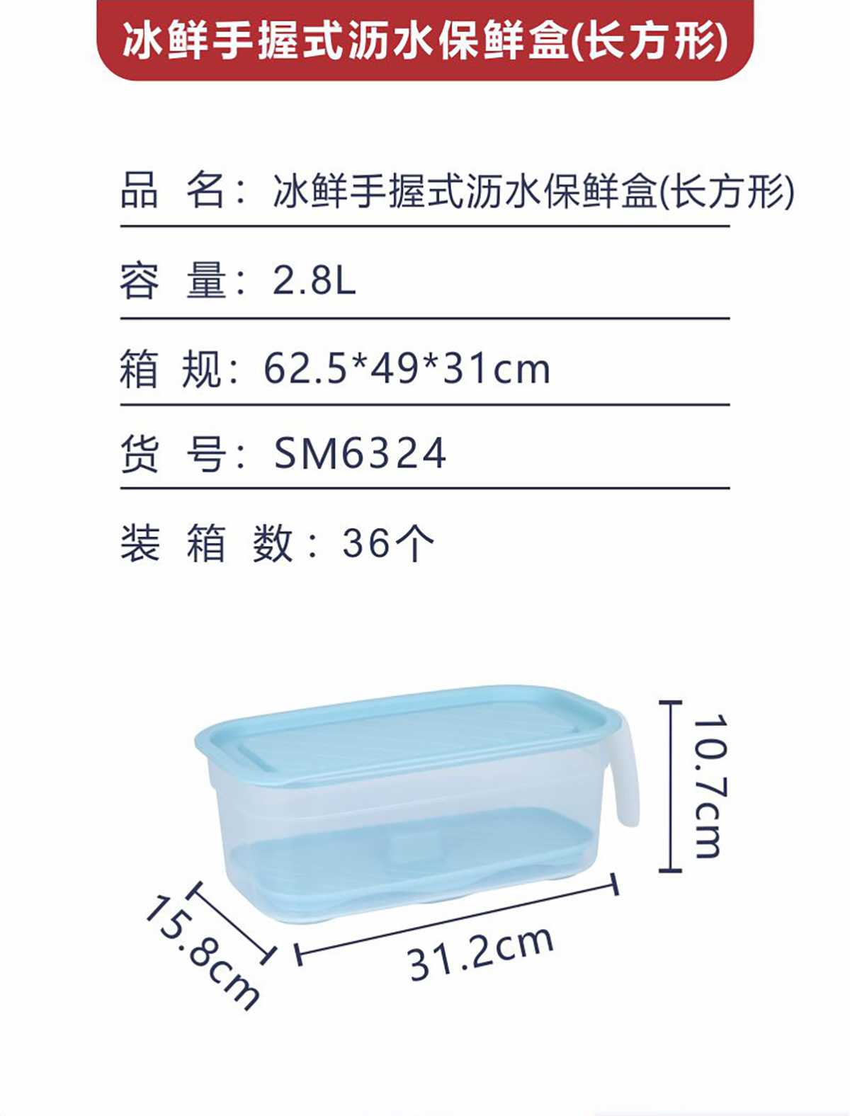 冰鮮手握式瀝水保鮮盒(長(zhǎng)方形)2.8L
