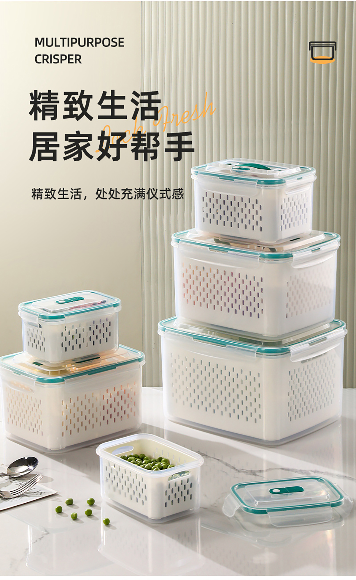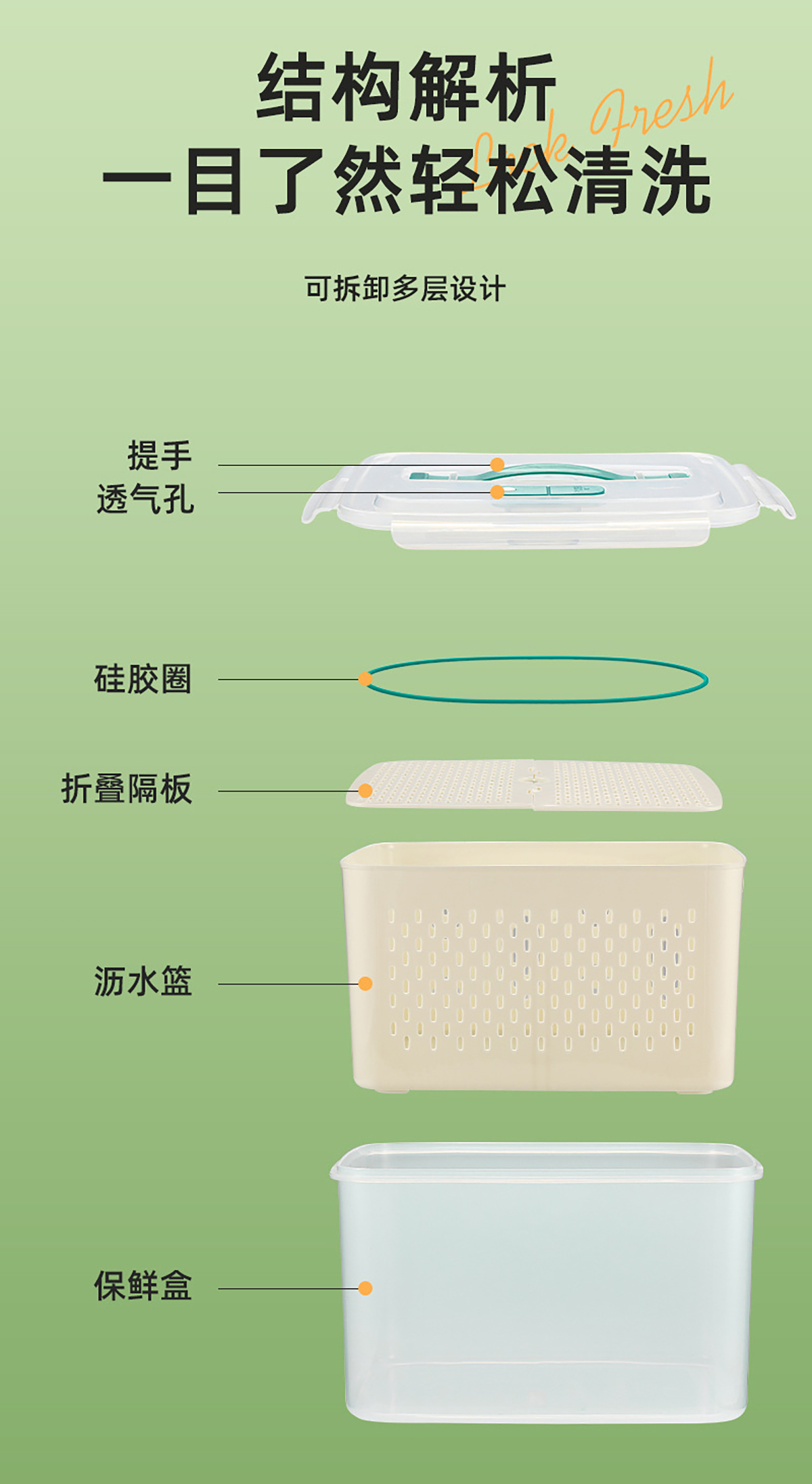 三件套/四件套/五件套手提密封分格瀝水保鮮盒