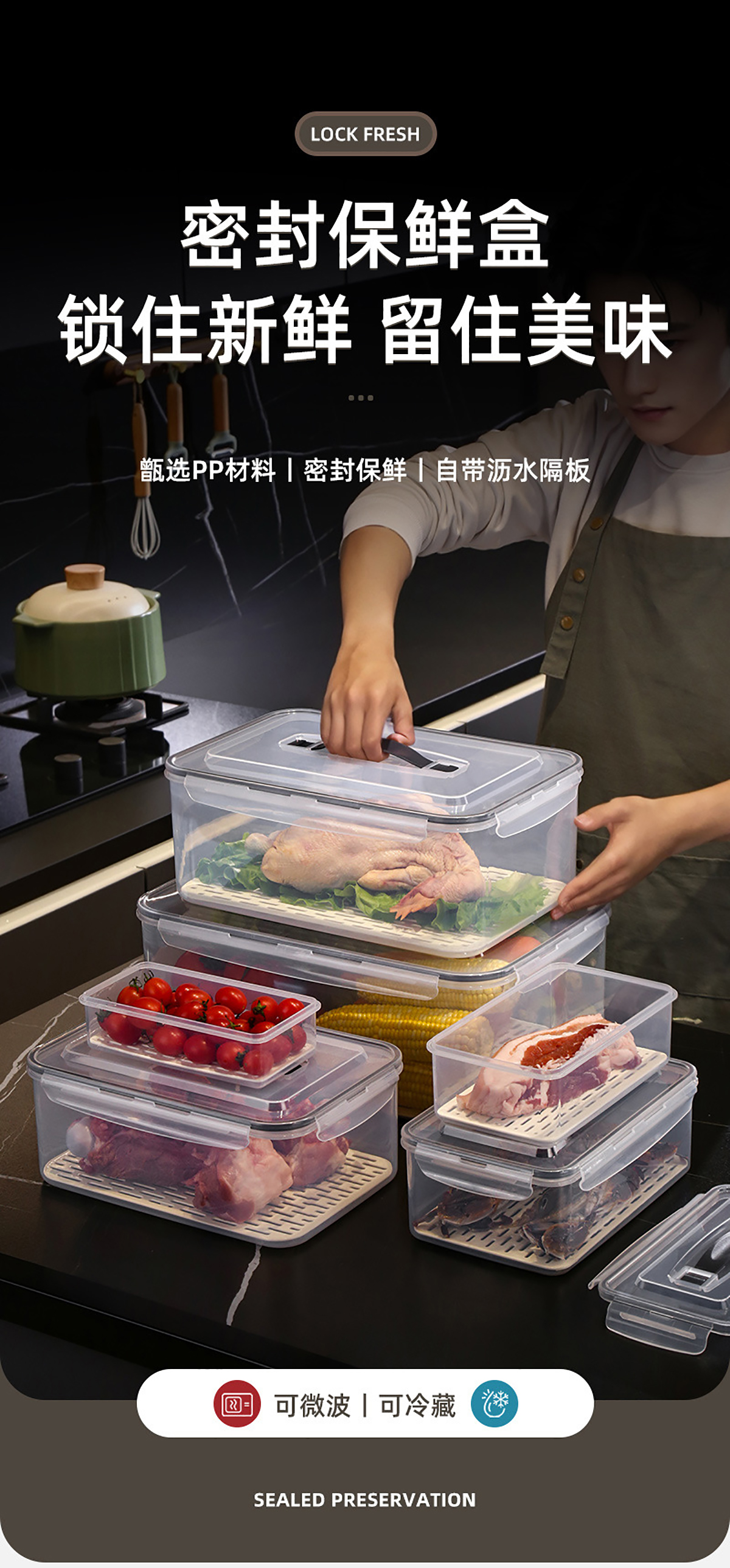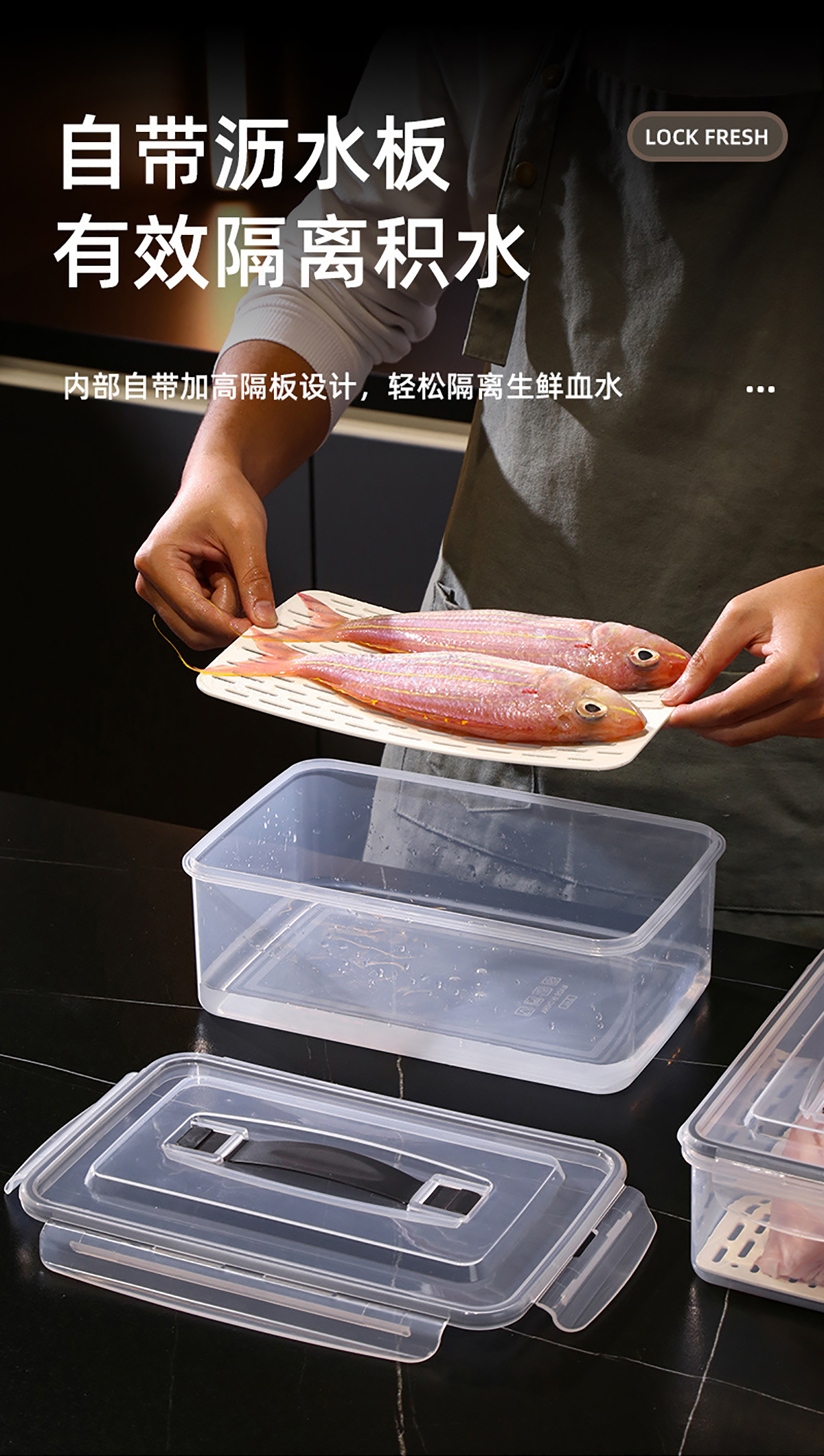 手提密封瀝水板保鮮盒(800nl/1.7L/3.4L/6.0L/10.5L/16.5L)