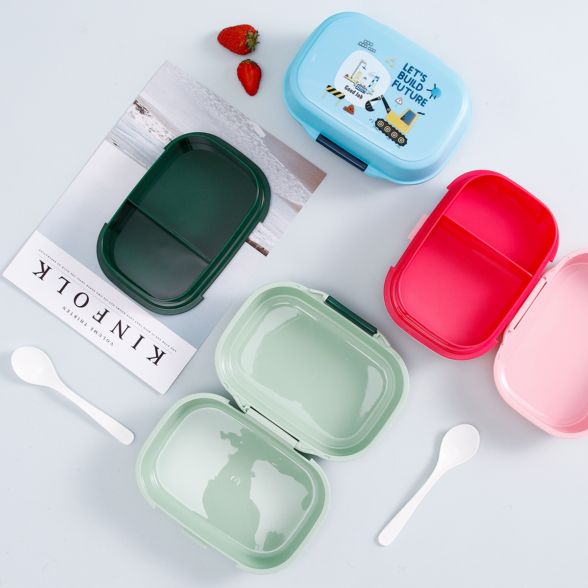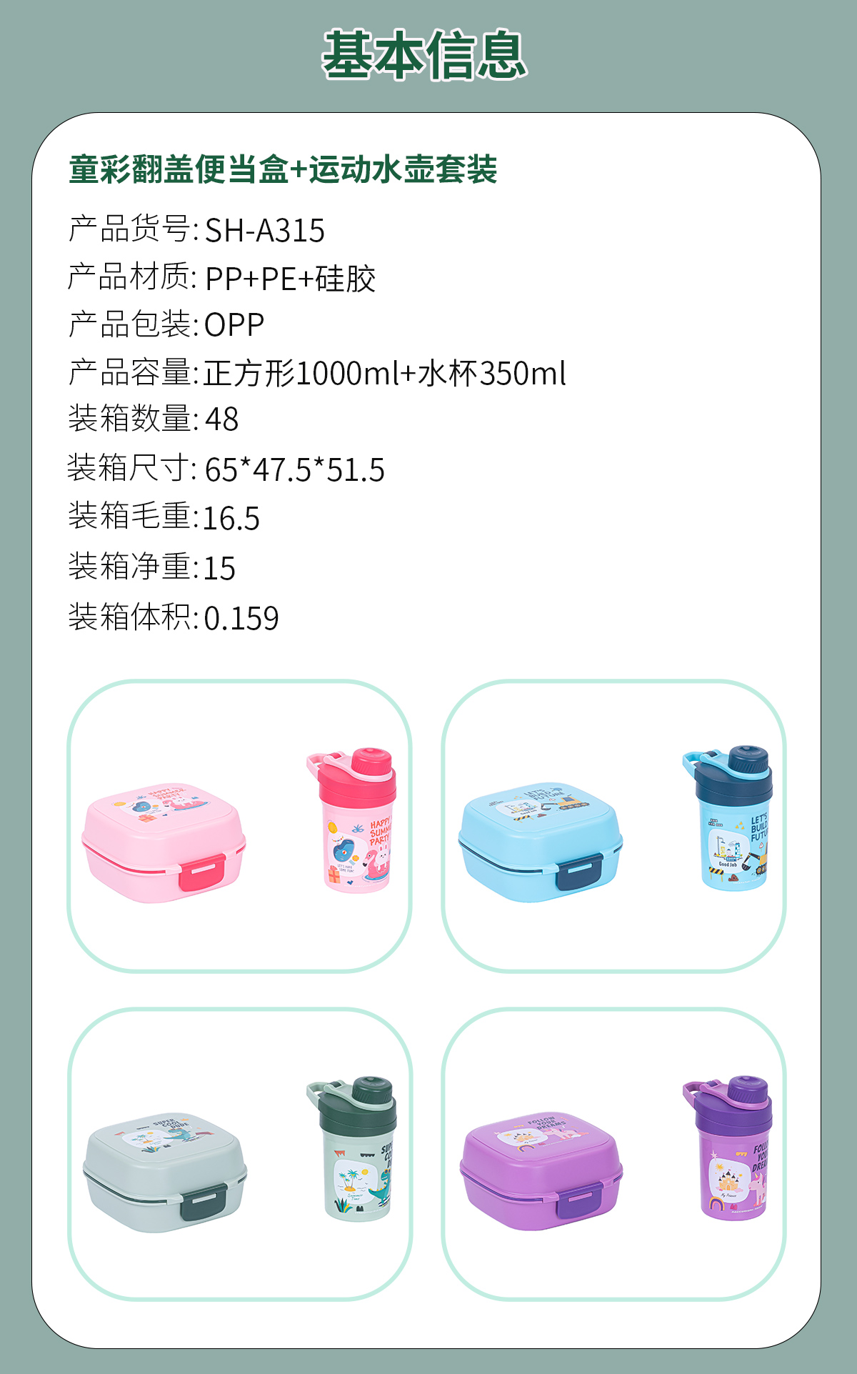 童彩翻蓋便當(dāng)盒+運(yùn)動水壺套裝(長方形/正方形1000ml+水杯350ml)