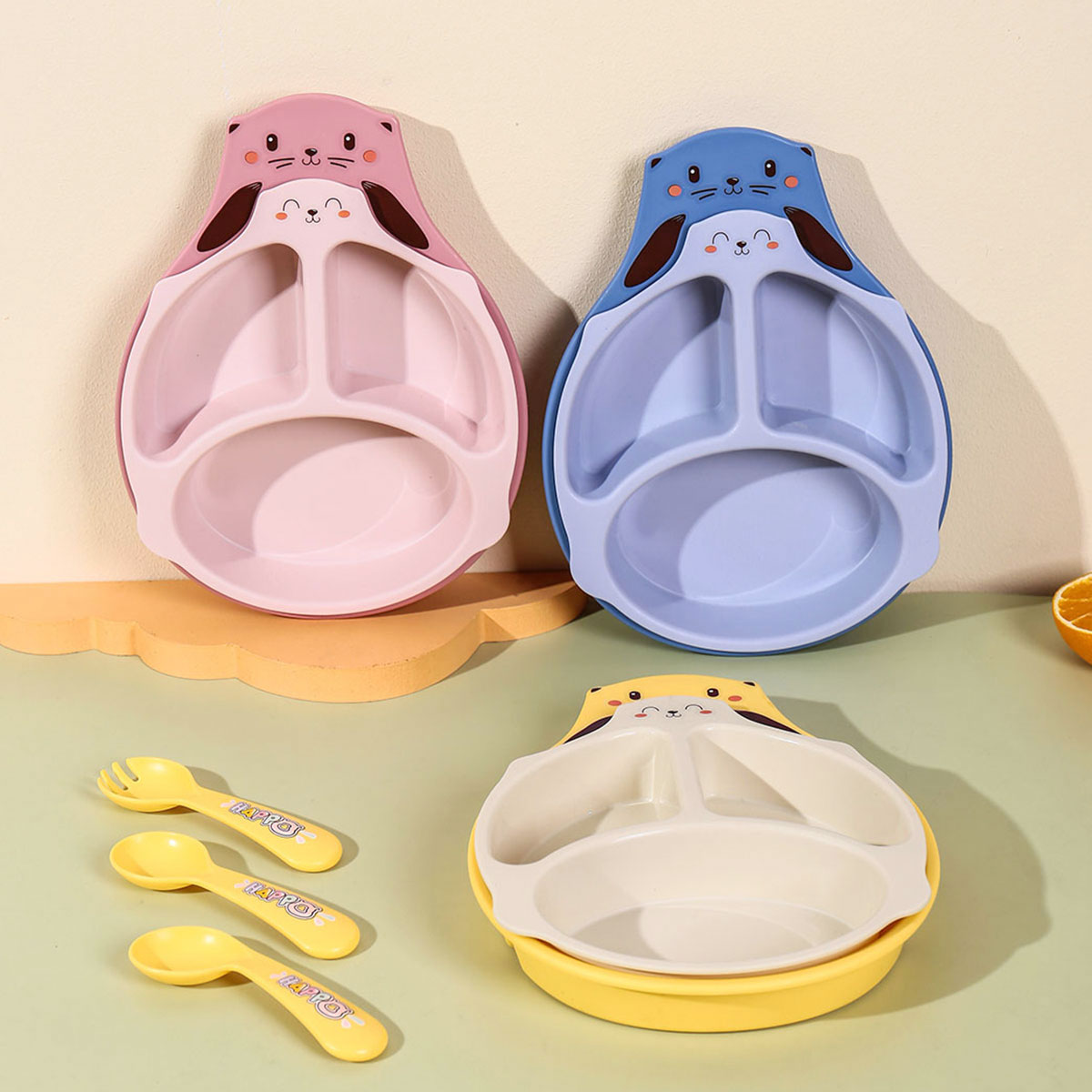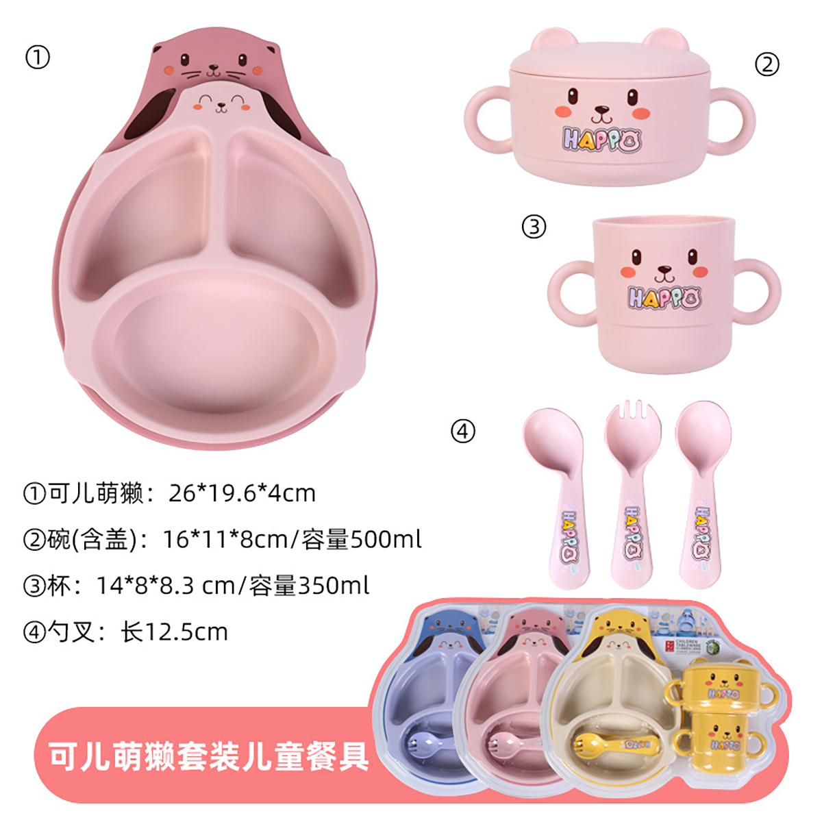 HH-XJ8334:餐盤260*196*40mm/碗160*110*80mm/杯140*80*83mm/勺叉125mm