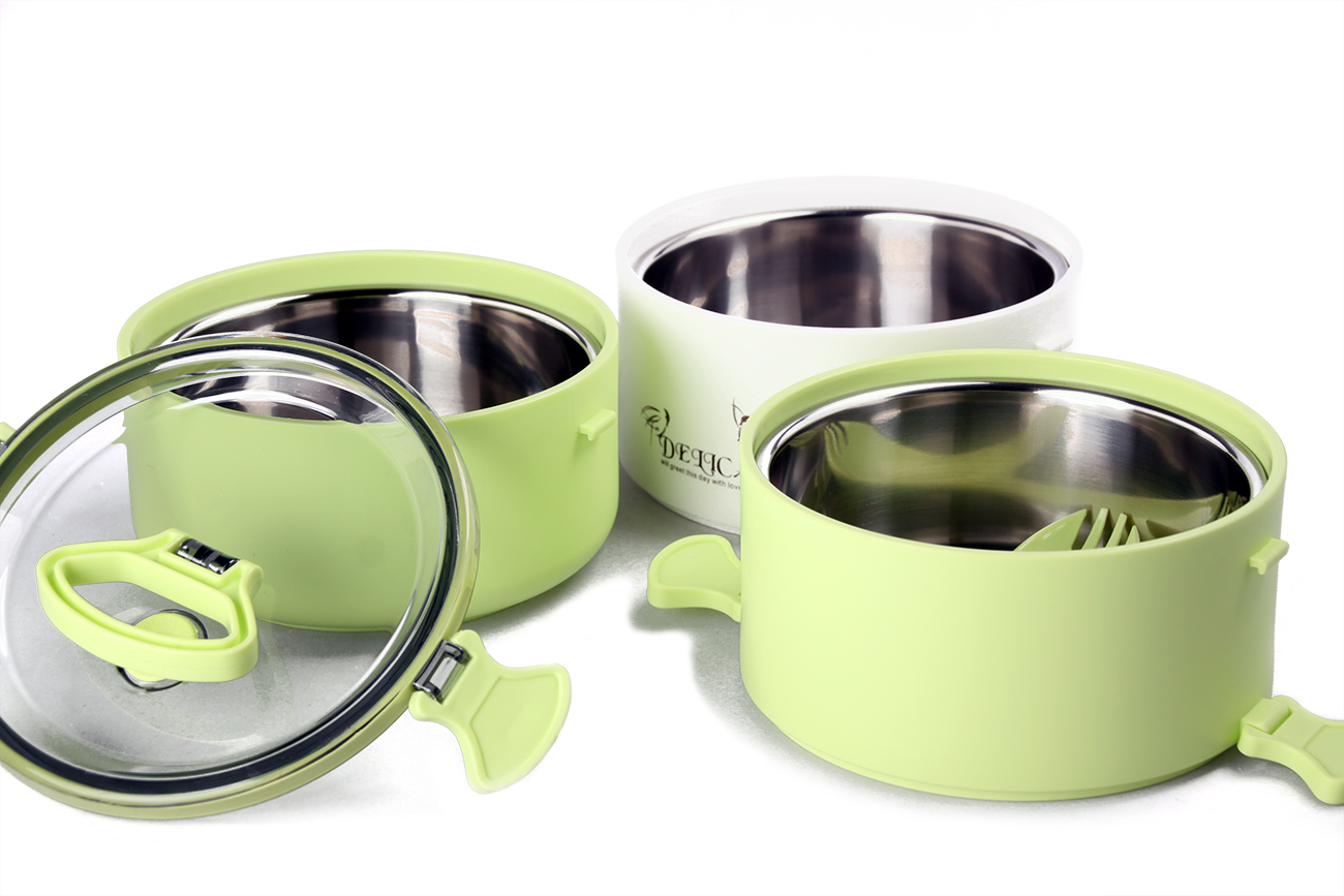 可伊圓形不銹鋼三層便當(dāng)盒(大精裝)