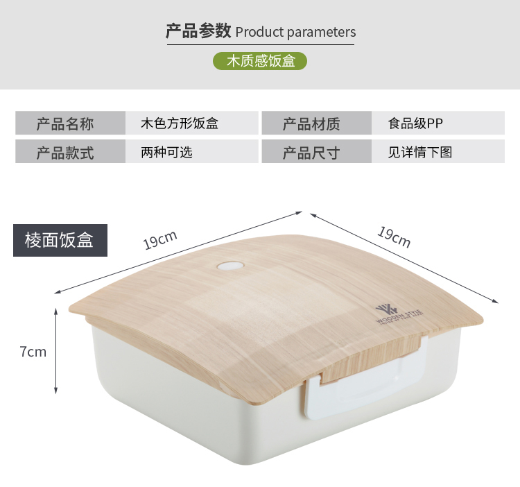 木色方形棱面飯盒(定制款)