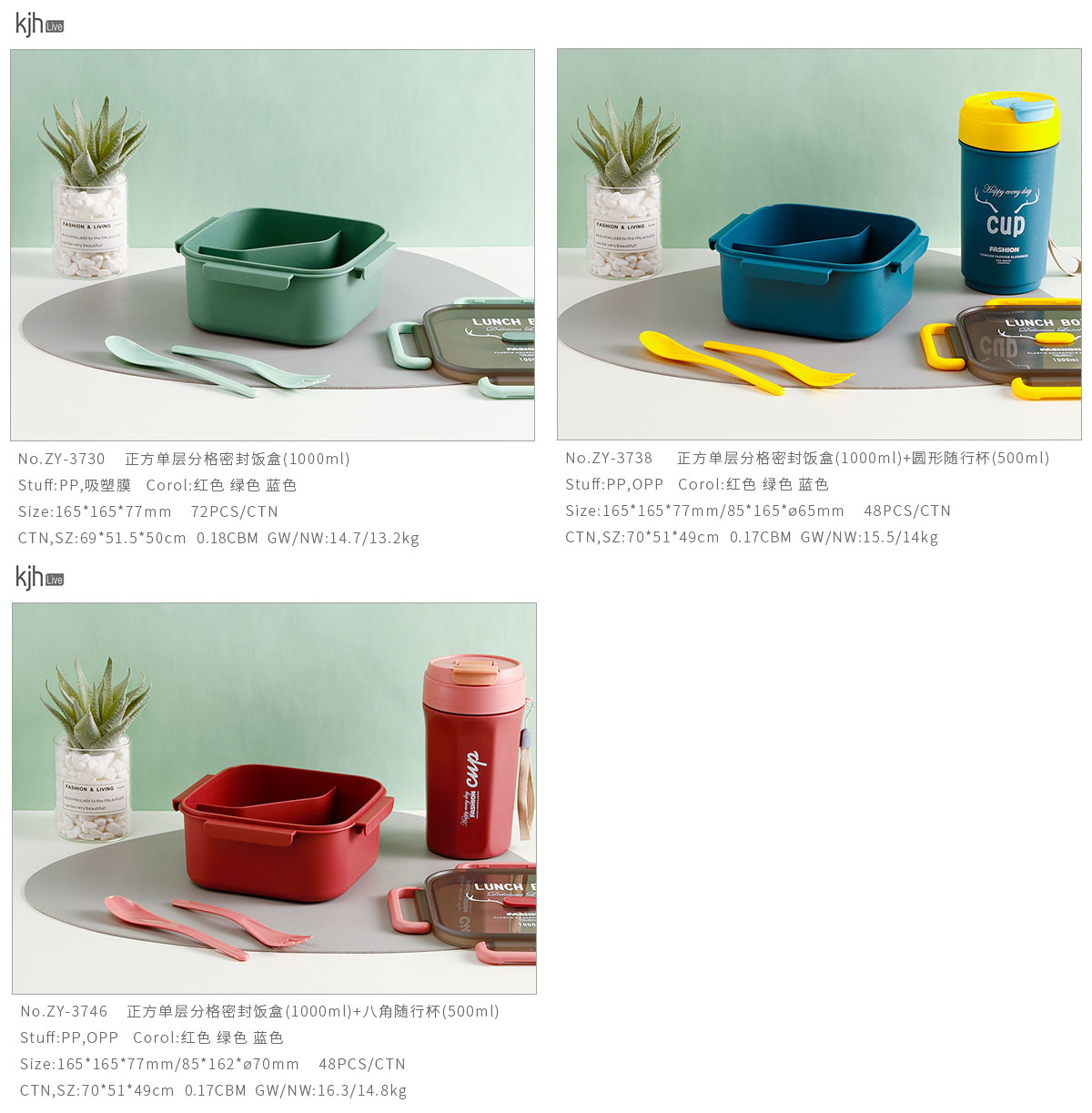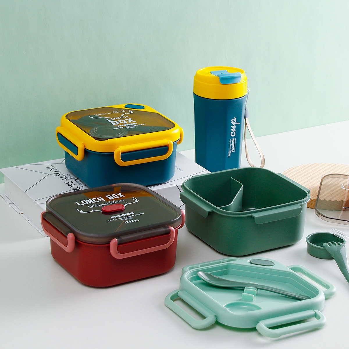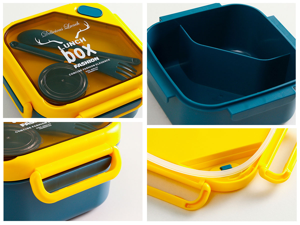品悅正方單層分格/單層分格(含醬料盒)密封飯盒+圓形/八角隨行杯
