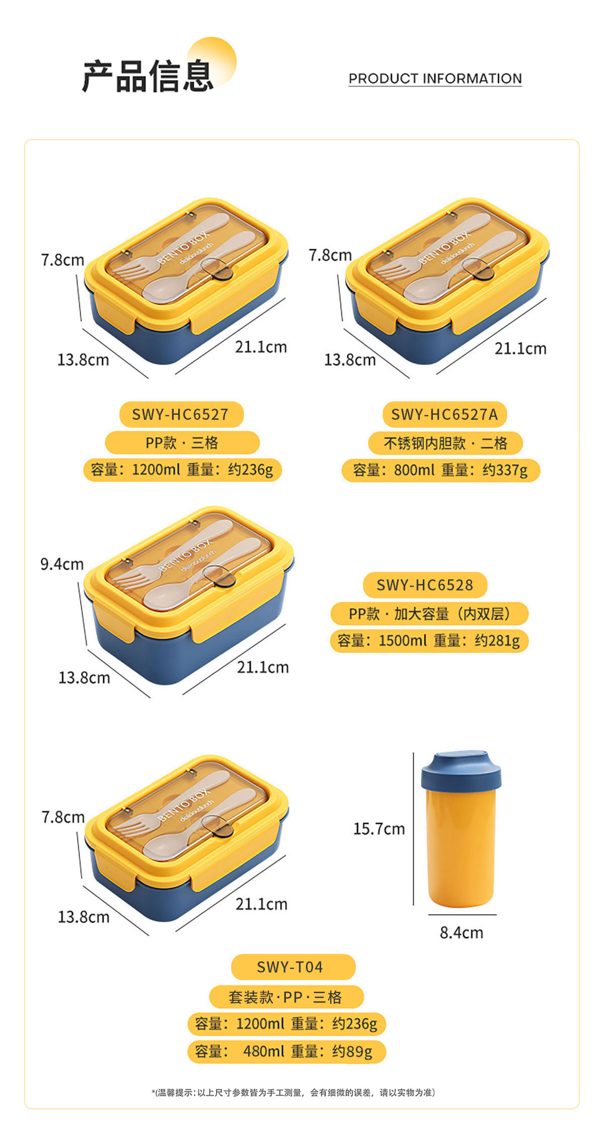 SWY-T04(套裝款):211*138*78mm/1200ml 水壺:84*157mm/480ml