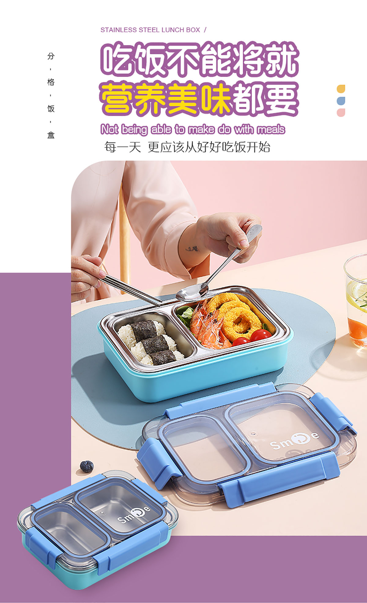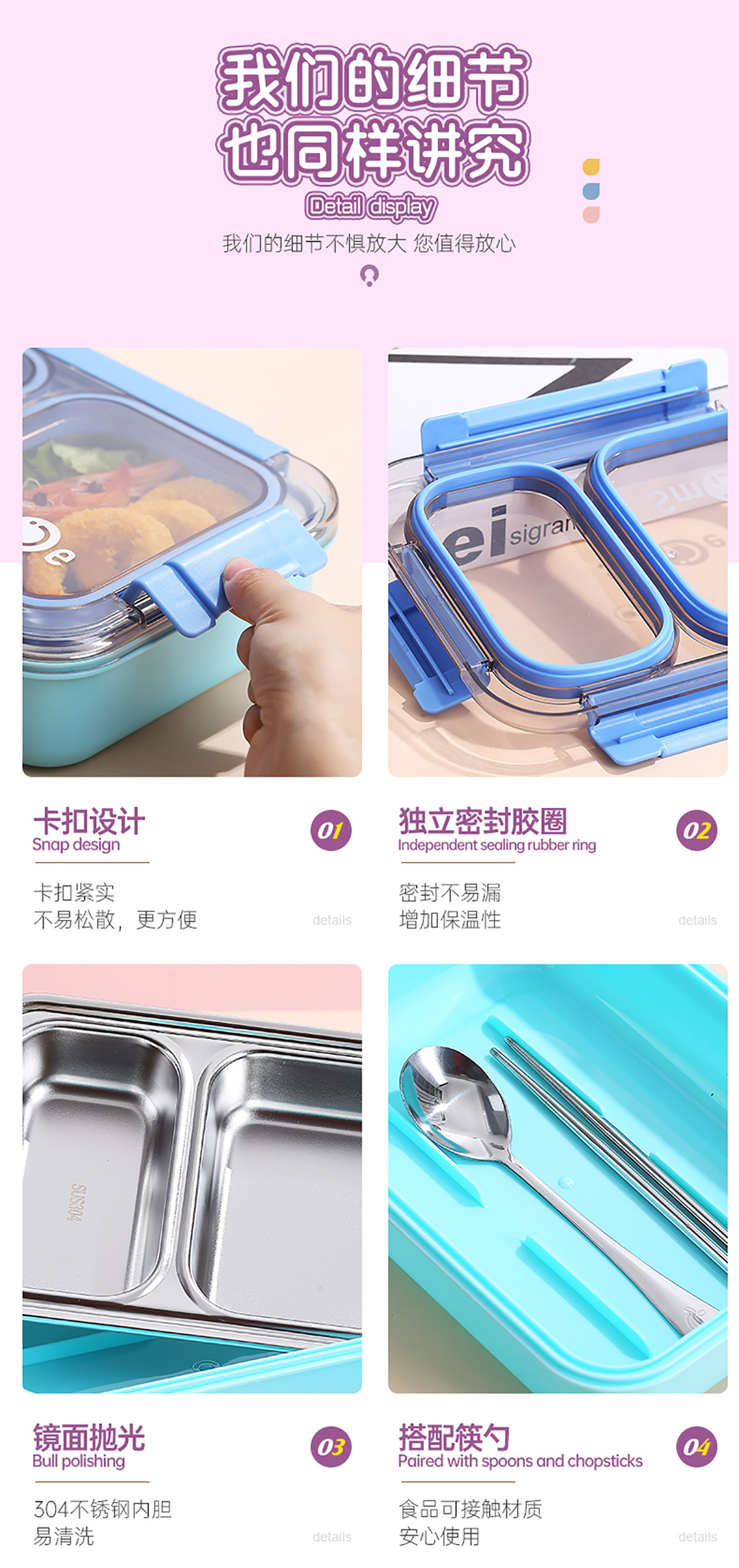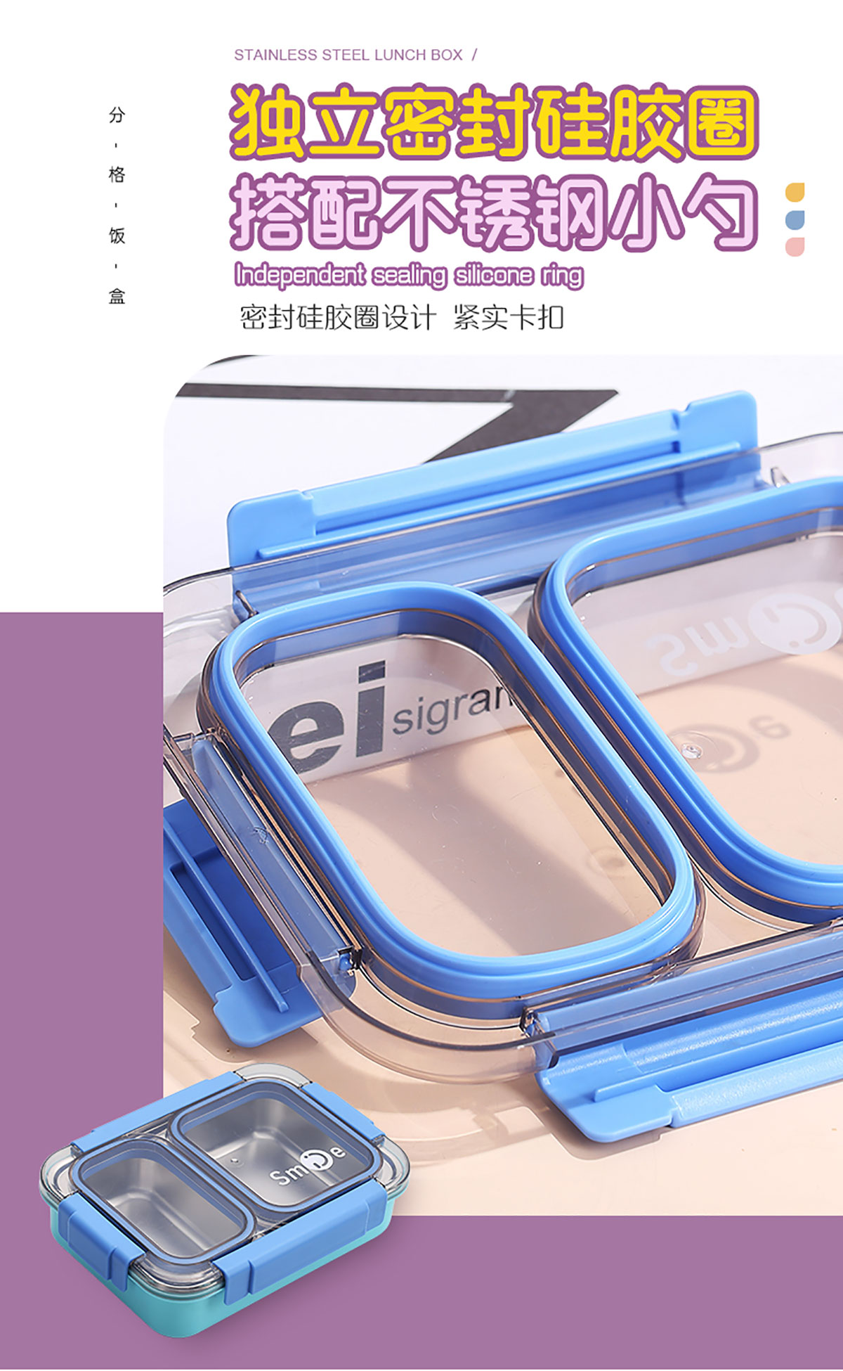 750ml獨立密封不銹鋼餐盒2格+不銹鋼勺筷