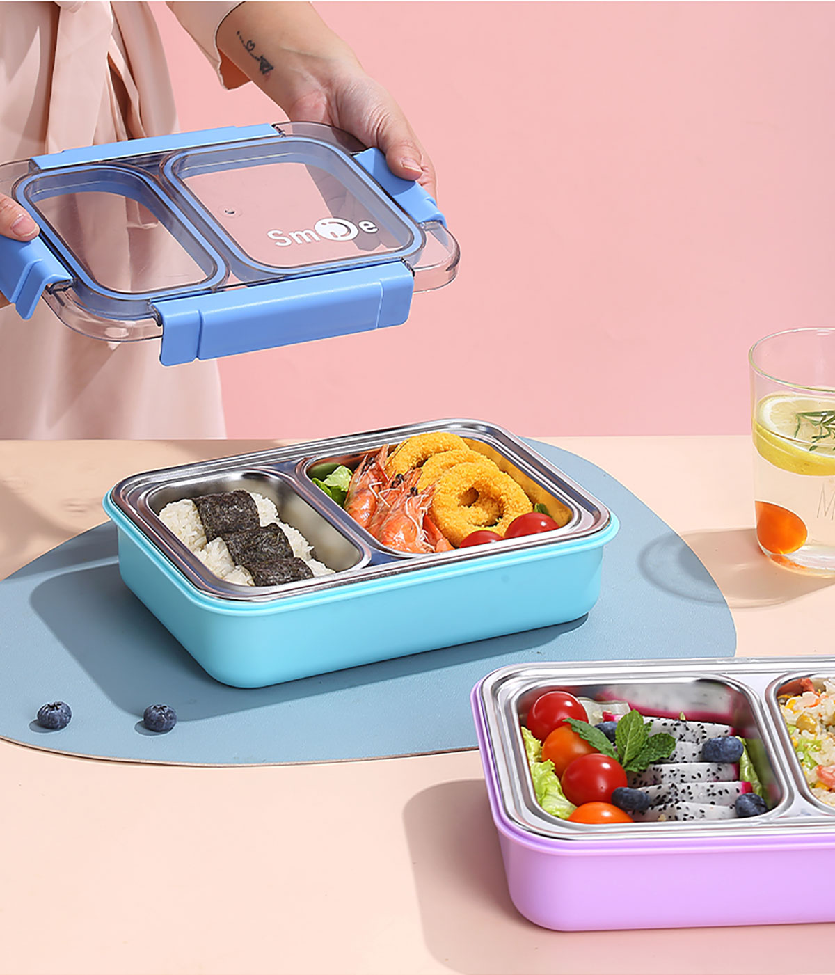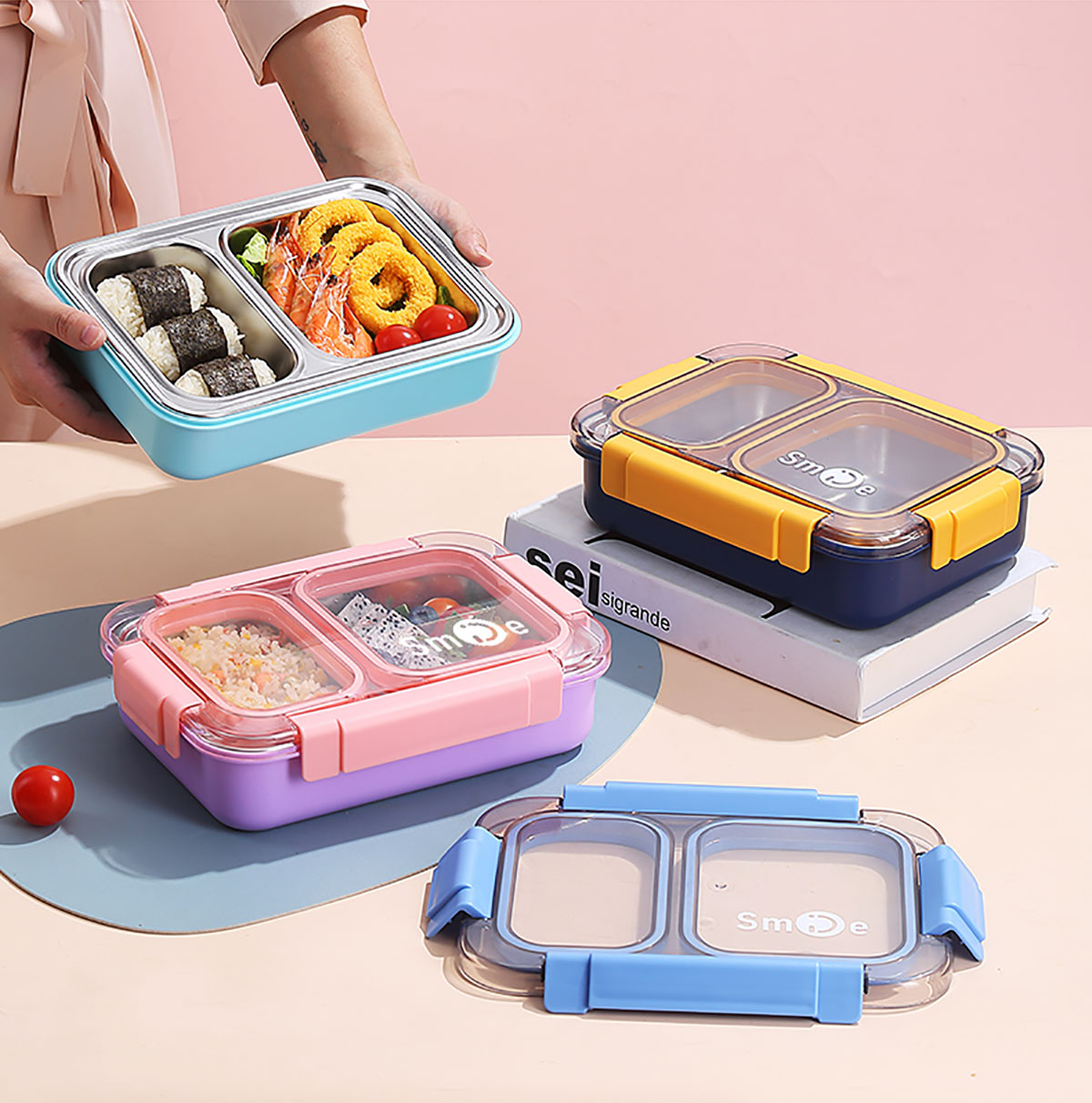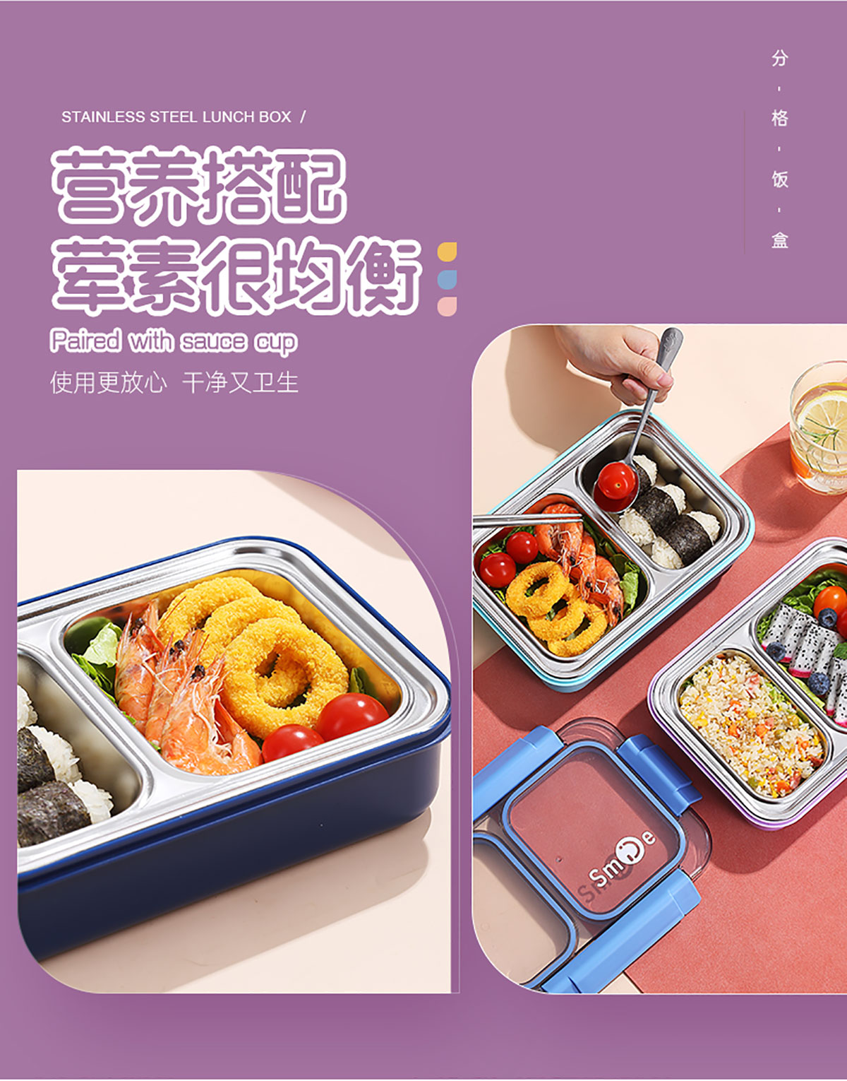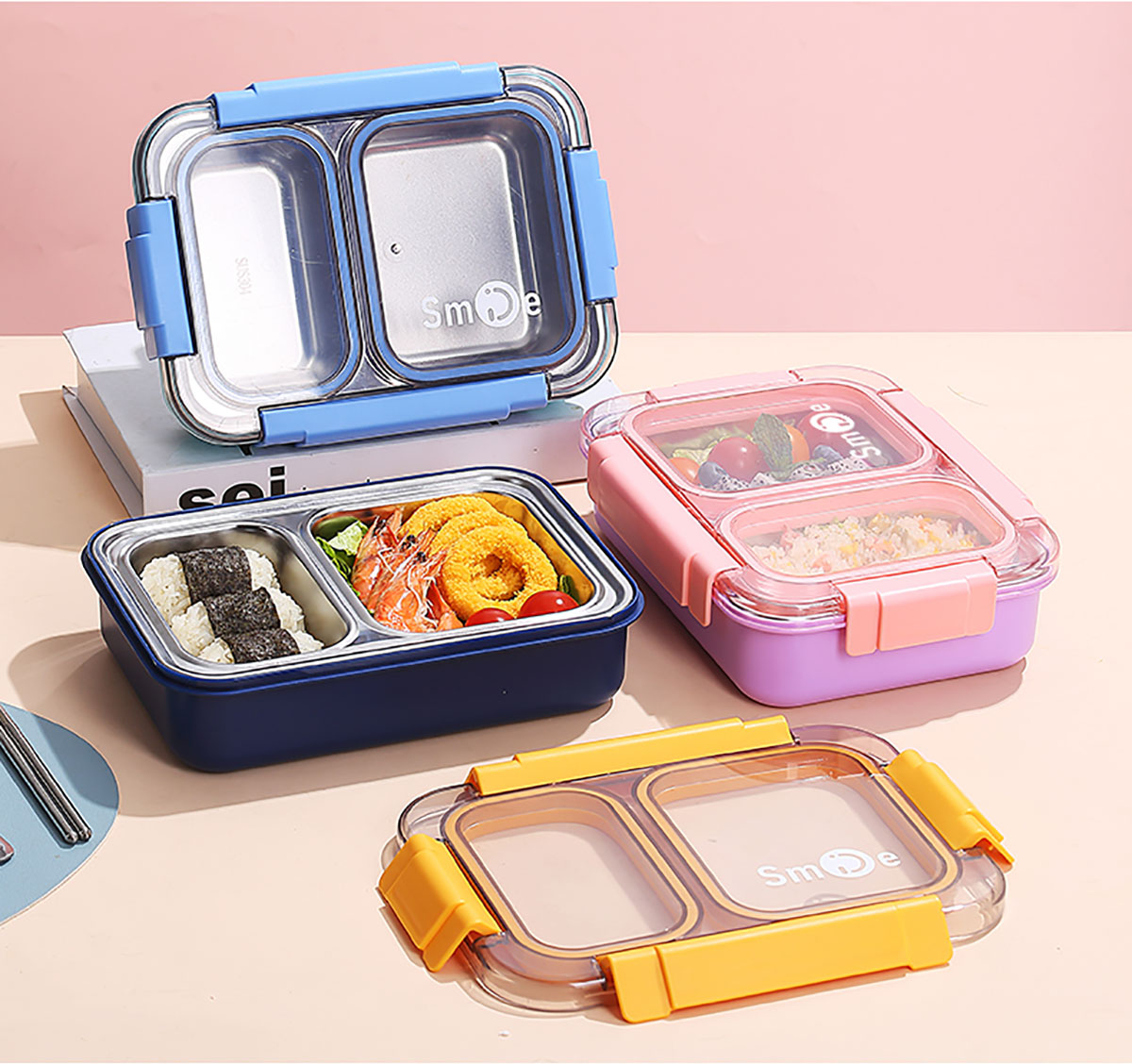 750ml獨立密封不銹鋼餐盒2格+不銹鋼勺筷