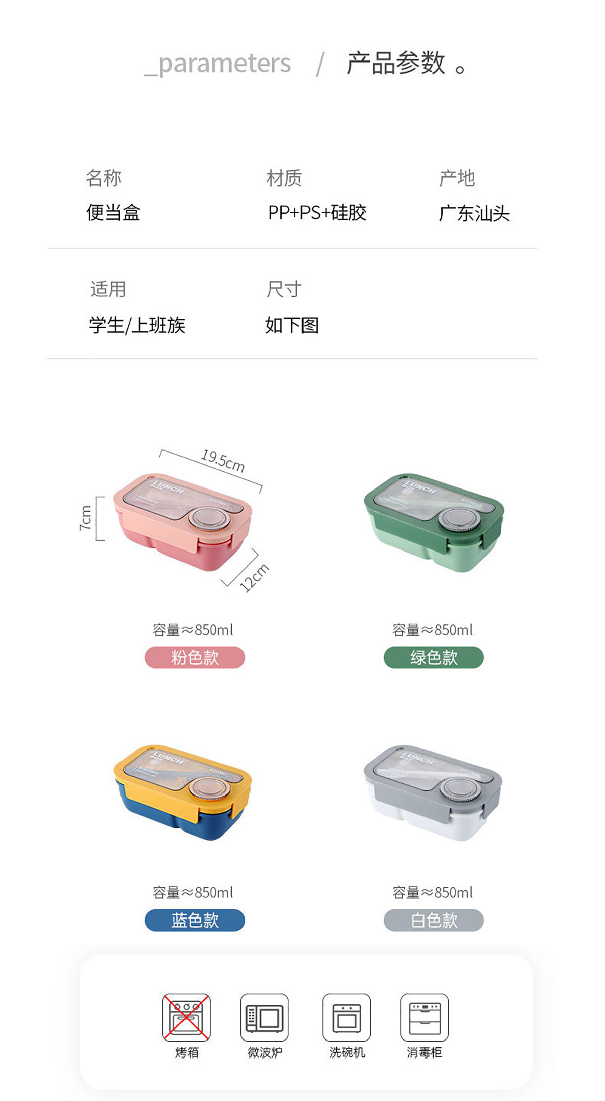長方形飯盒850ml
