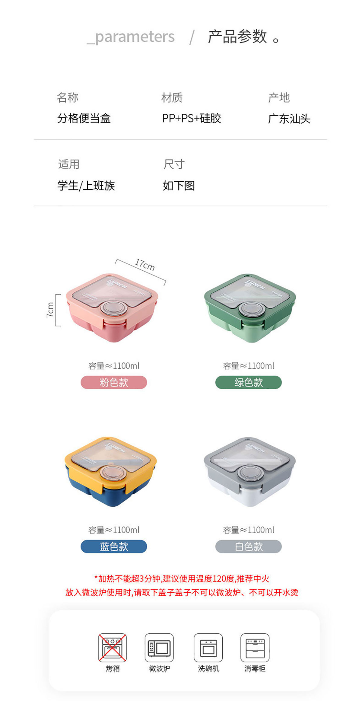 正方形飯盒1100ml