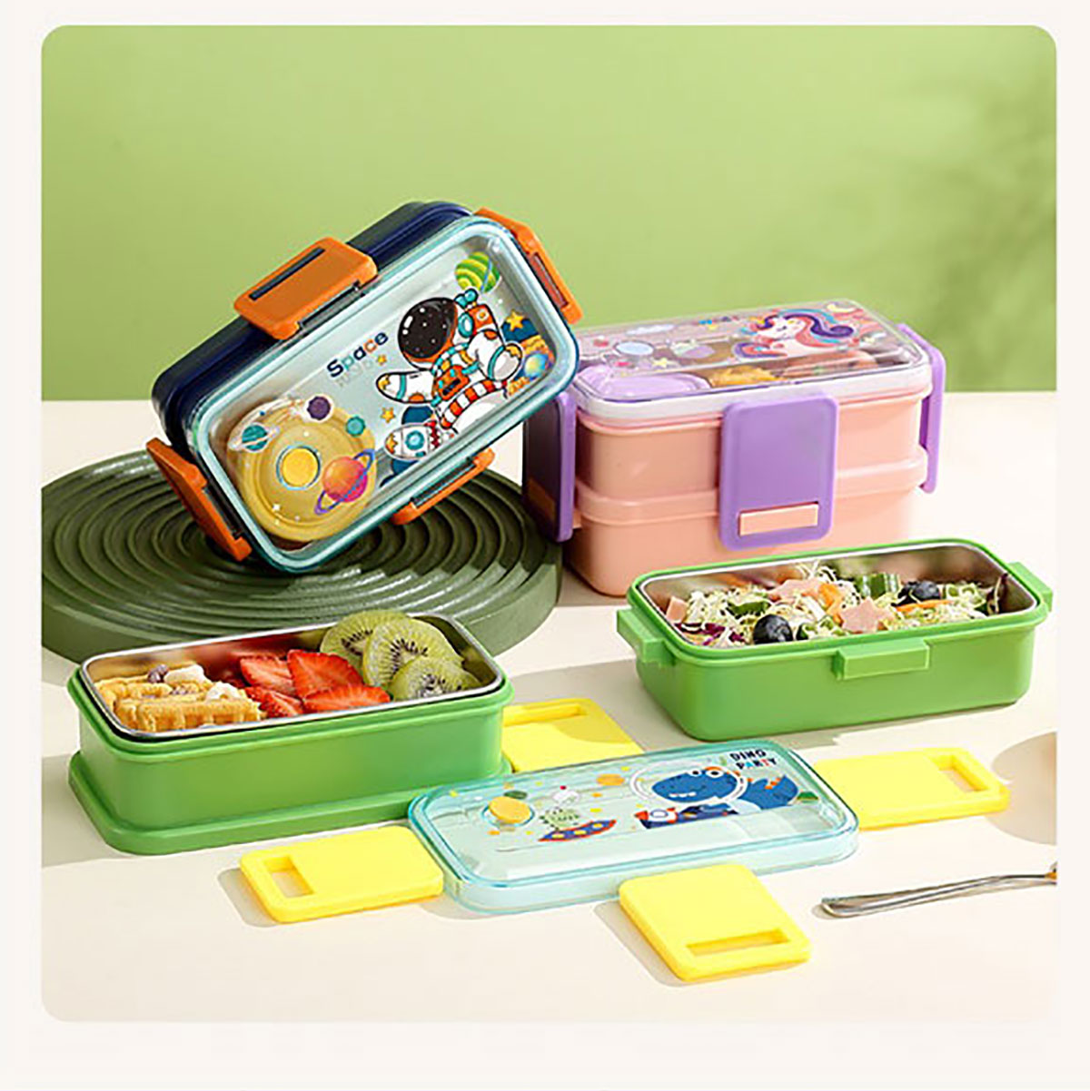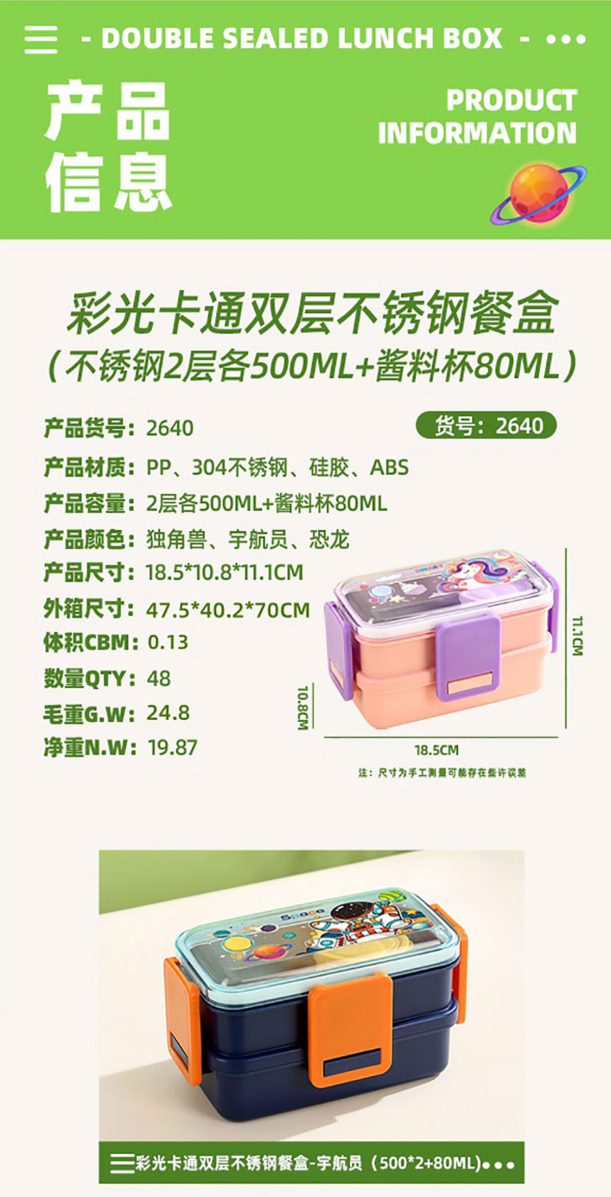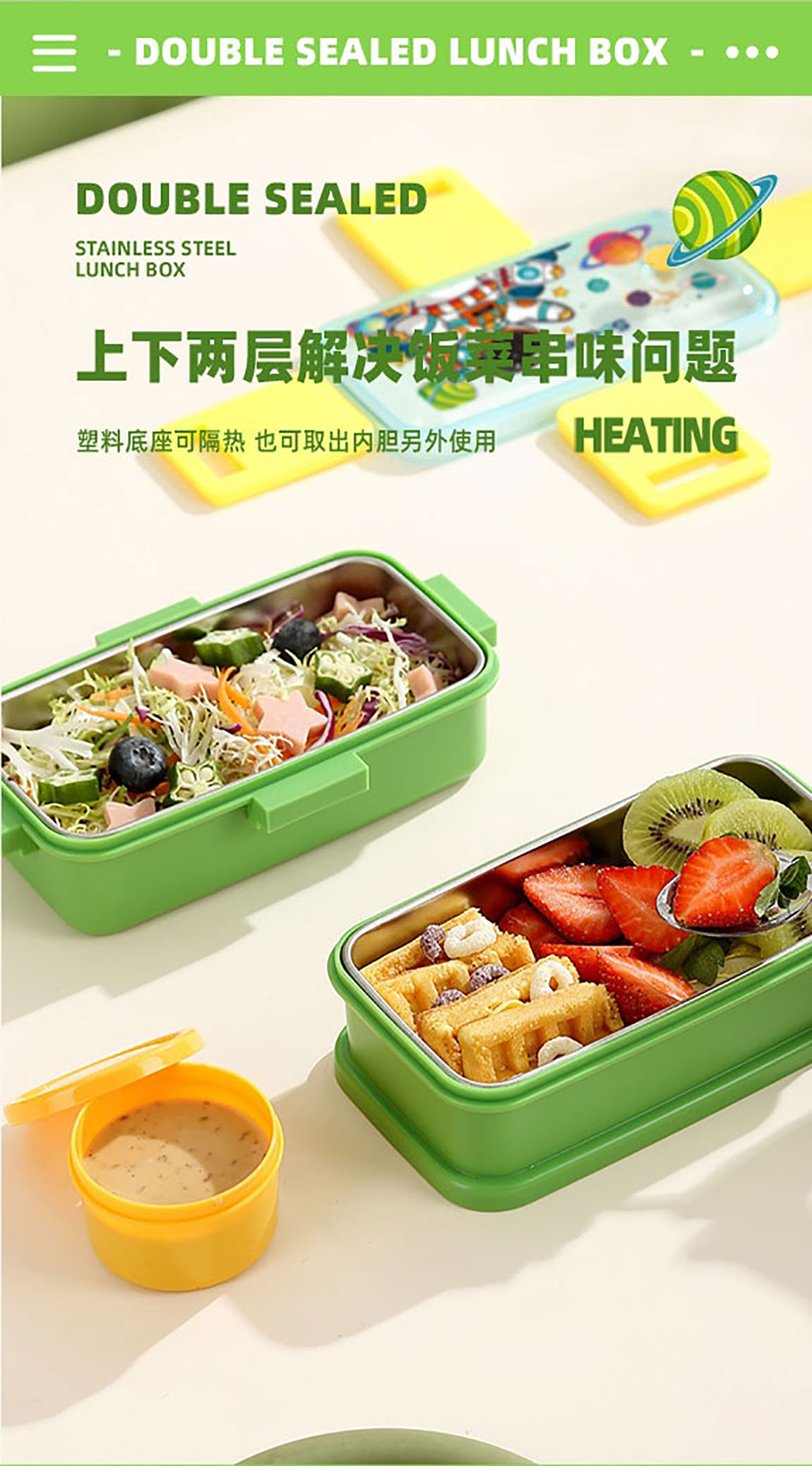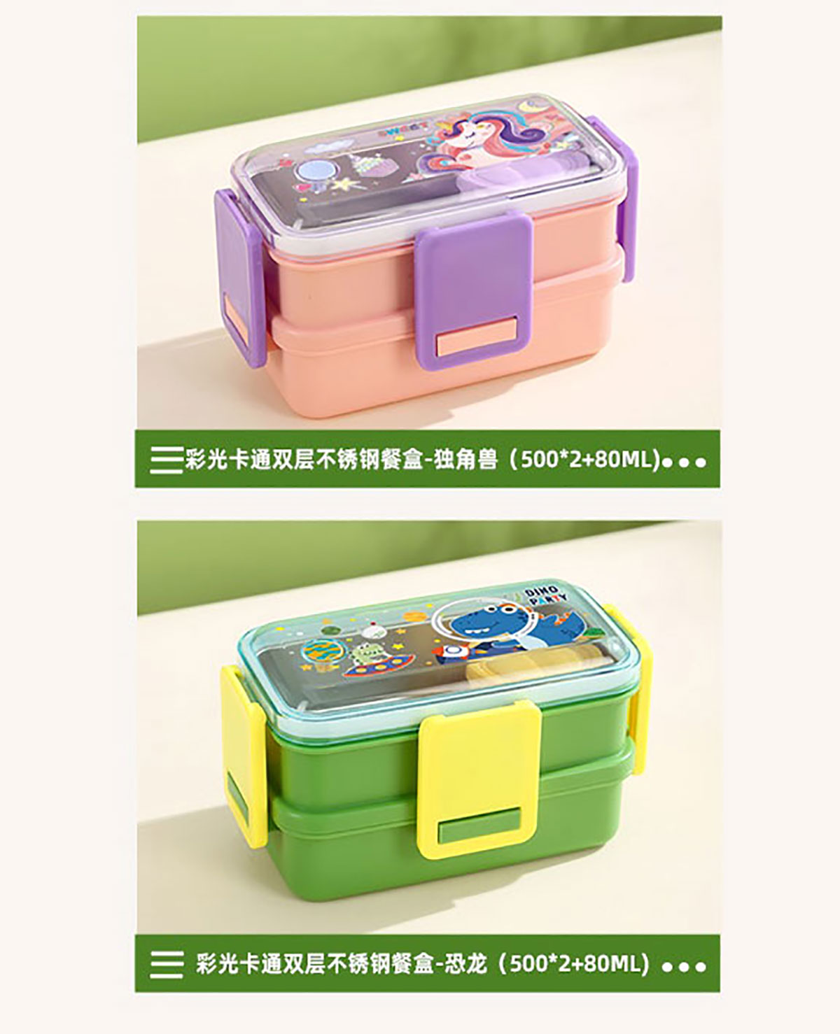 彩光卡通雙層不銹鋼餐盒(500mlx2+醬料杯80ml)
