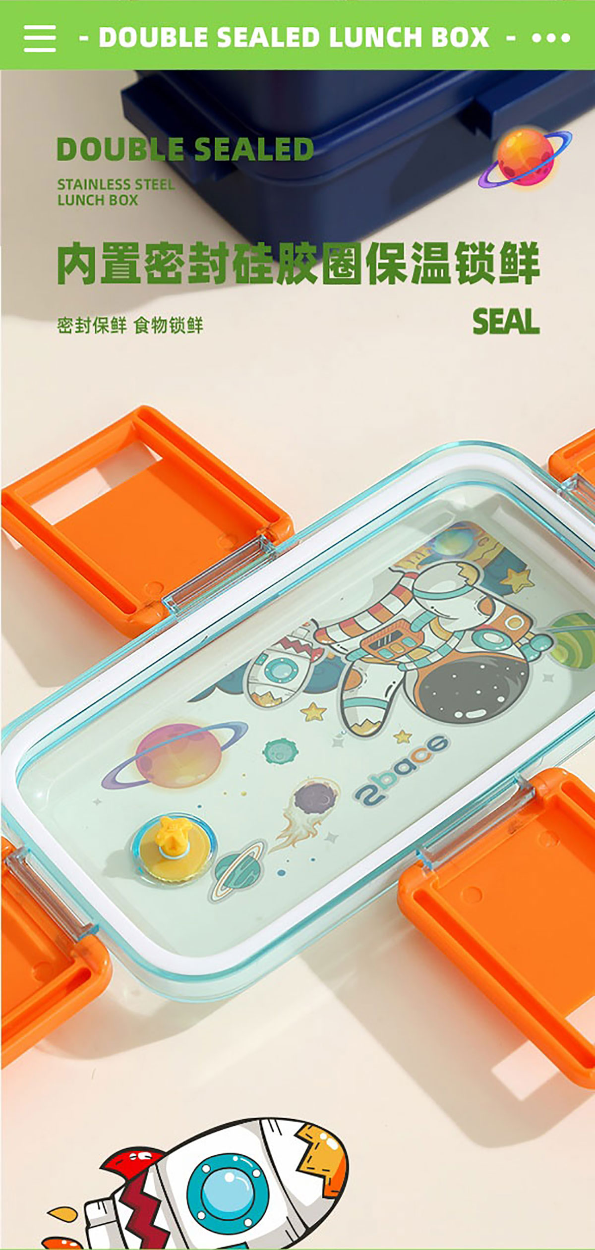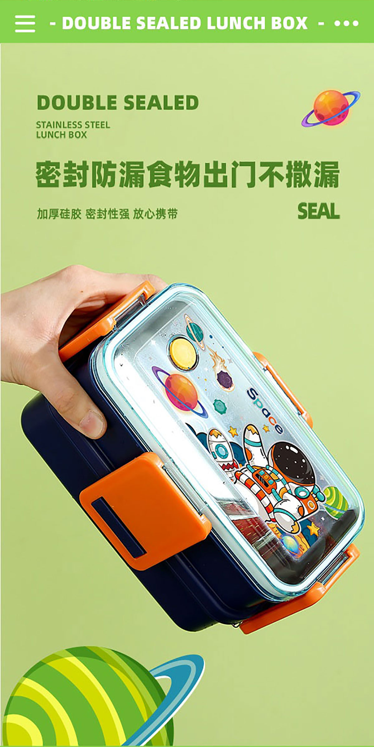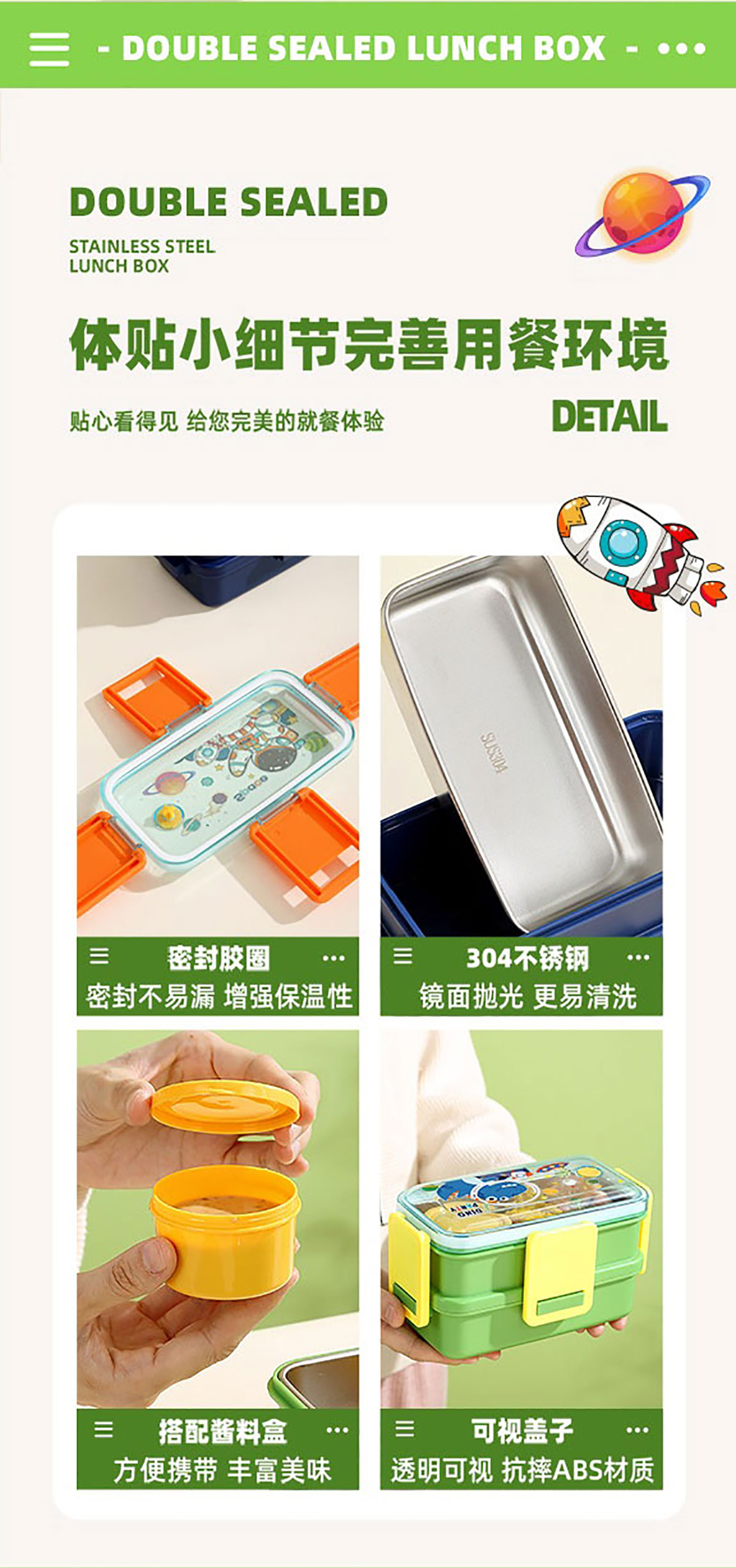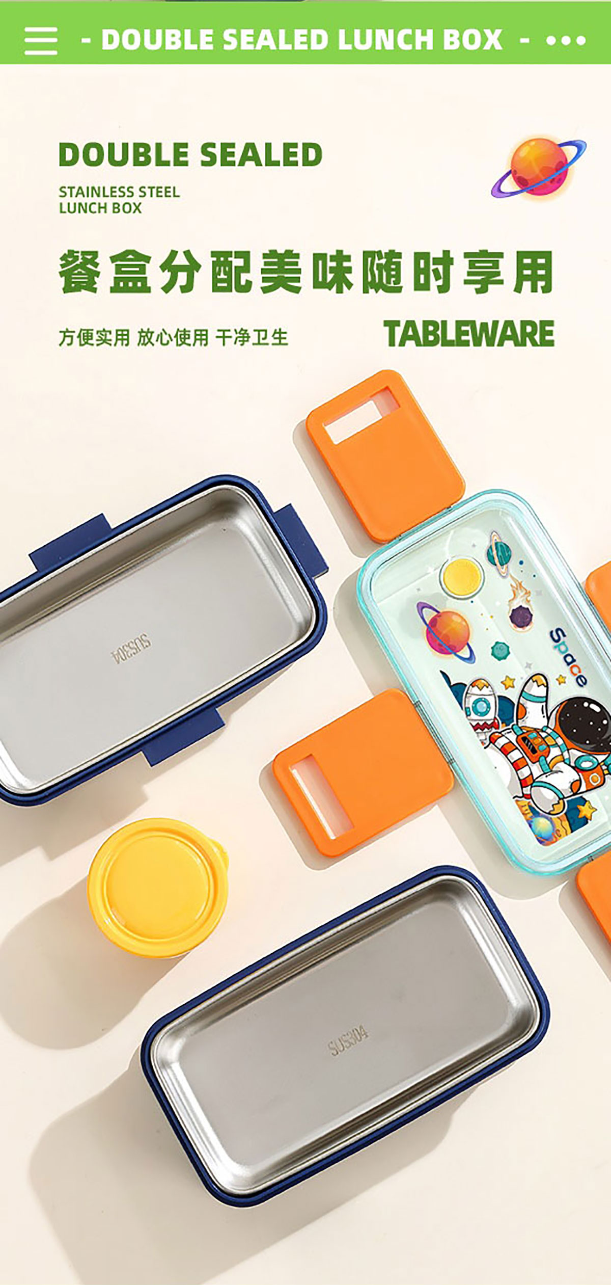 彩光卡通雙層不銹鋼餐盒(500mlx2+醬料杯80ml)