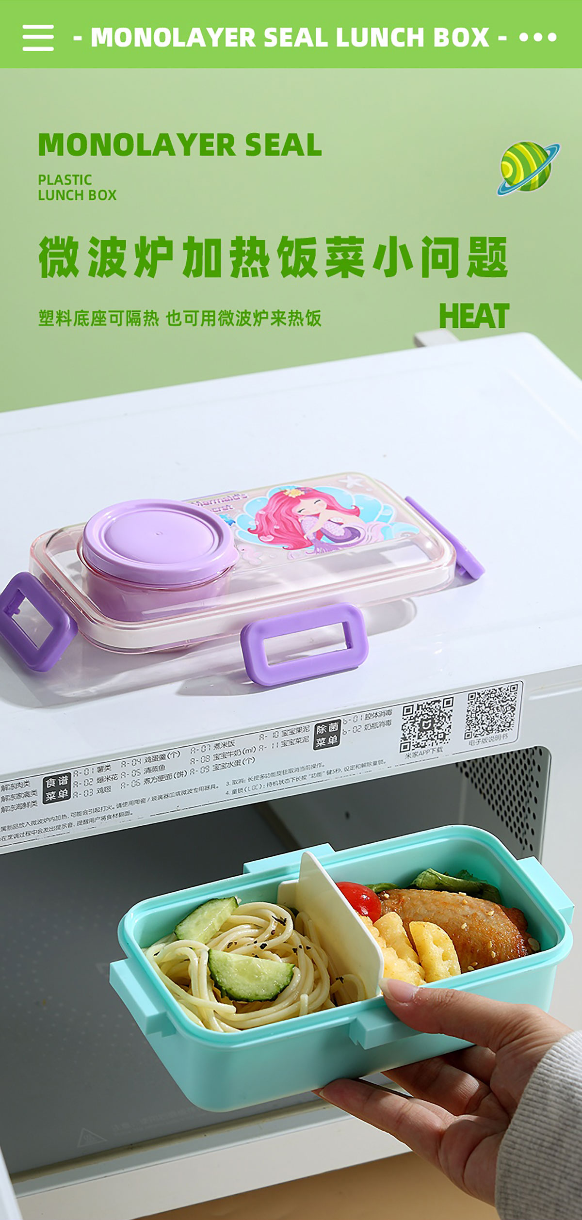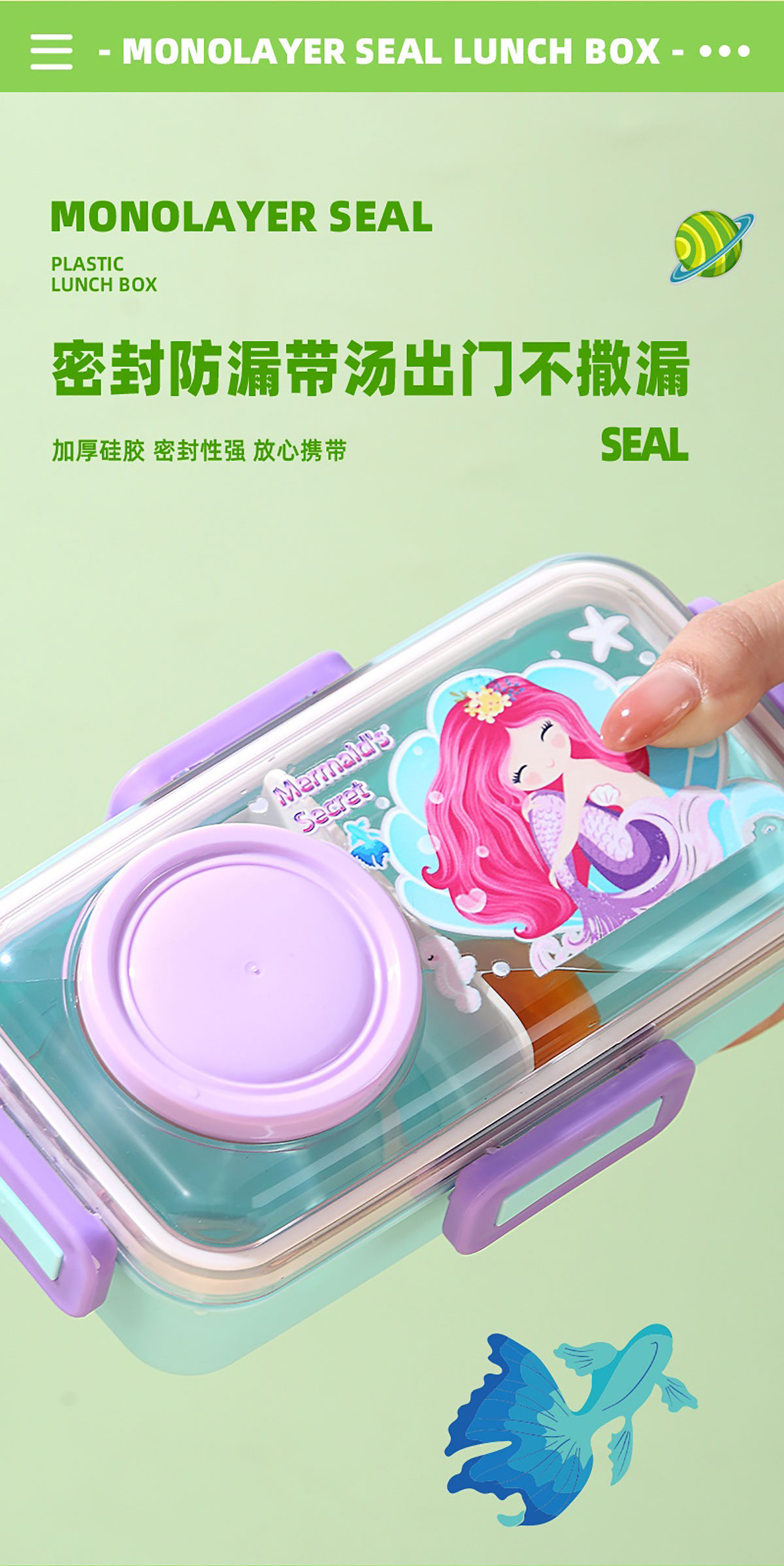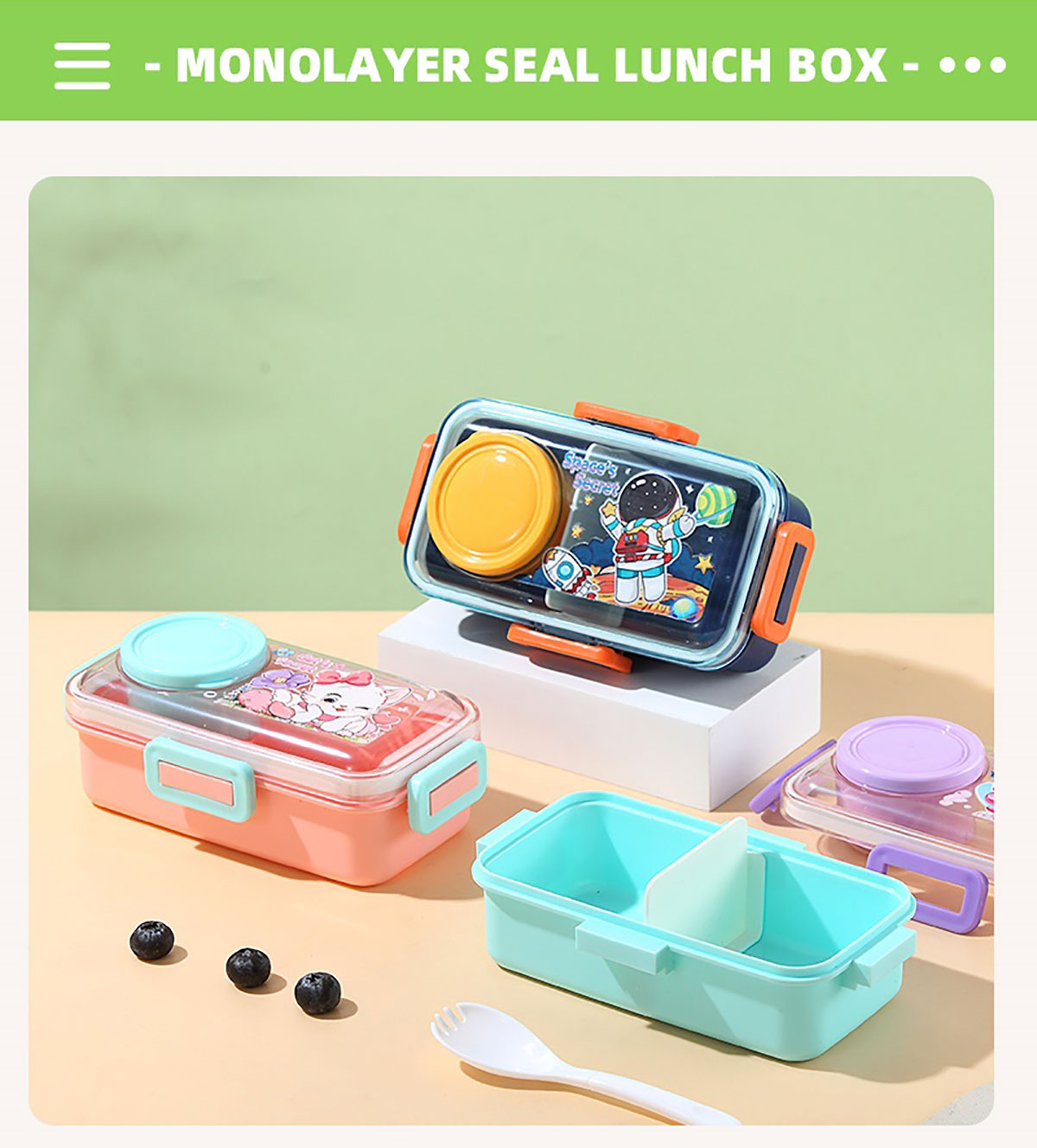 彩光卡通密封餐盒(單格500ml+外置醬料杯80ml+pp勺)