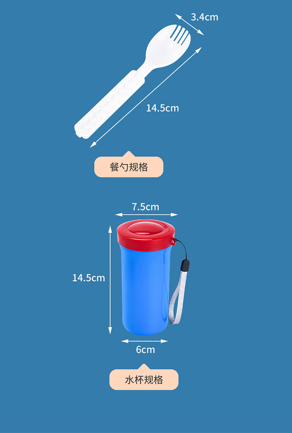 Size: 飯盒150*150*108mm/850ml 水杯70*70*140mm/400ml