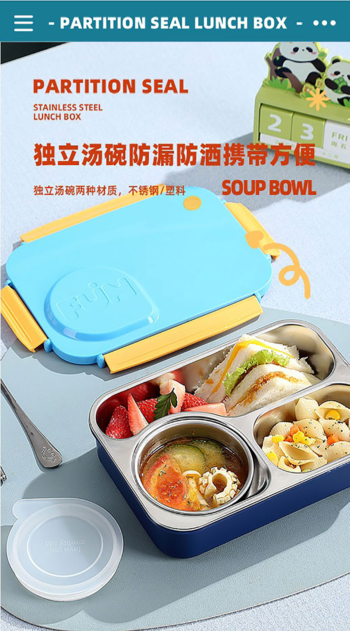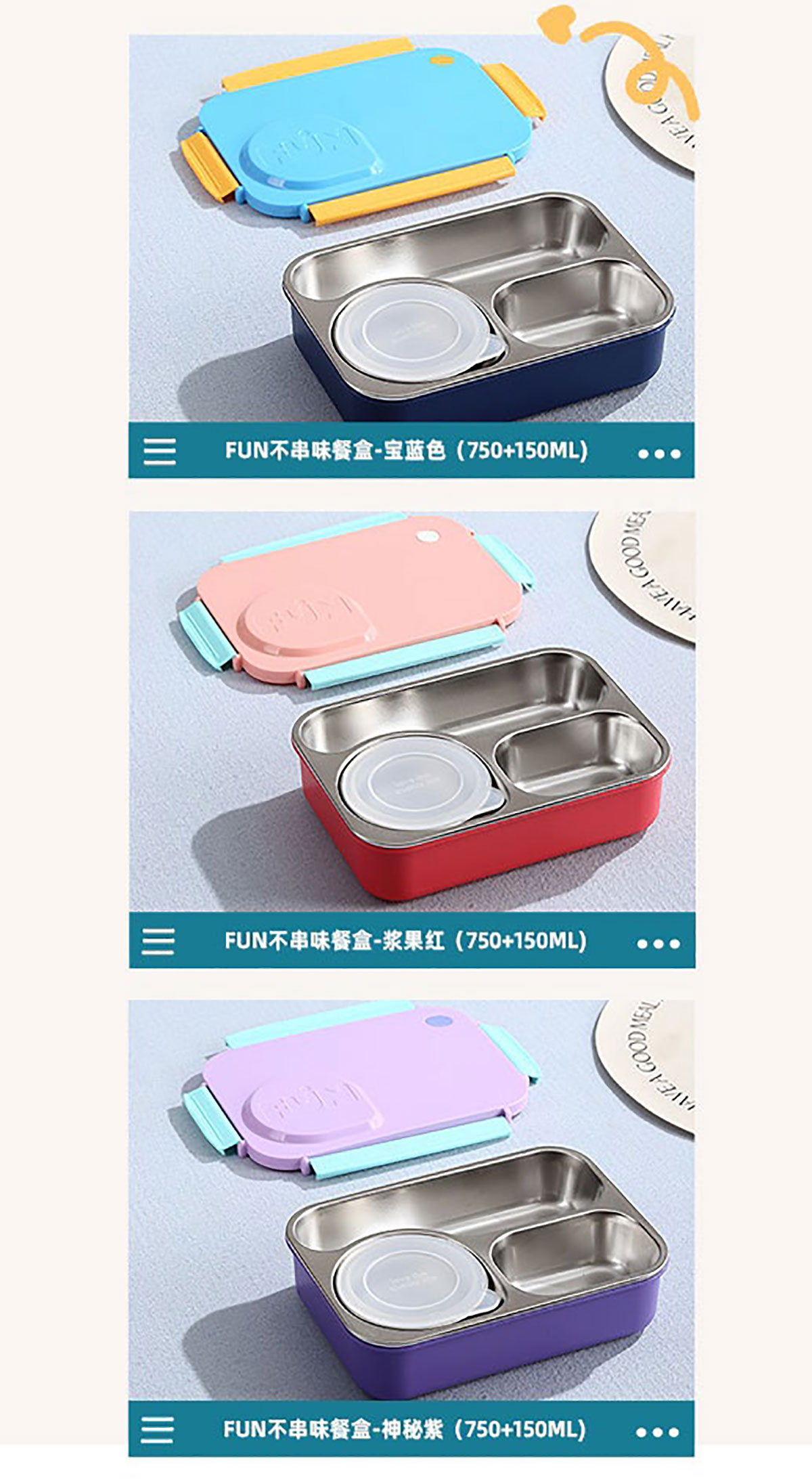 Size: AQX-2655:215*165*70mm/+塑料碗150ml AQX-2656:215*165*70mm/+不銹鋼碗150ml