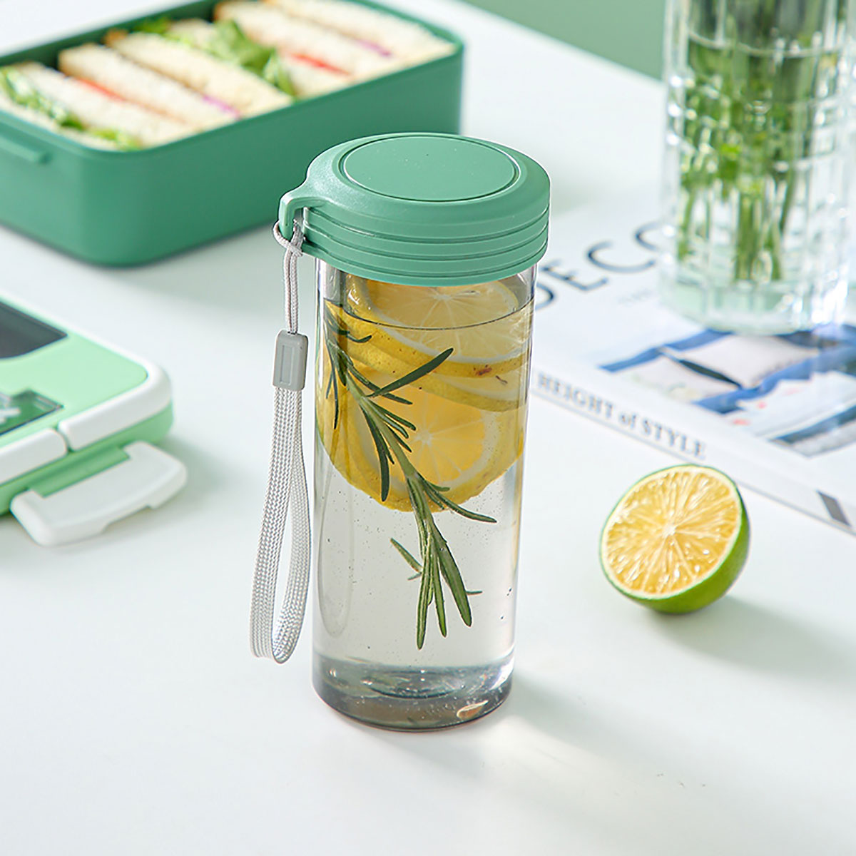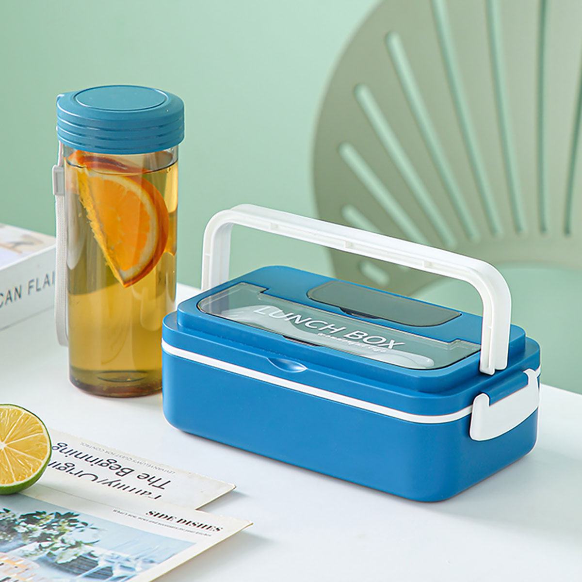 長(zhǎng)方形單層套裝水杯飯盒(塑料)