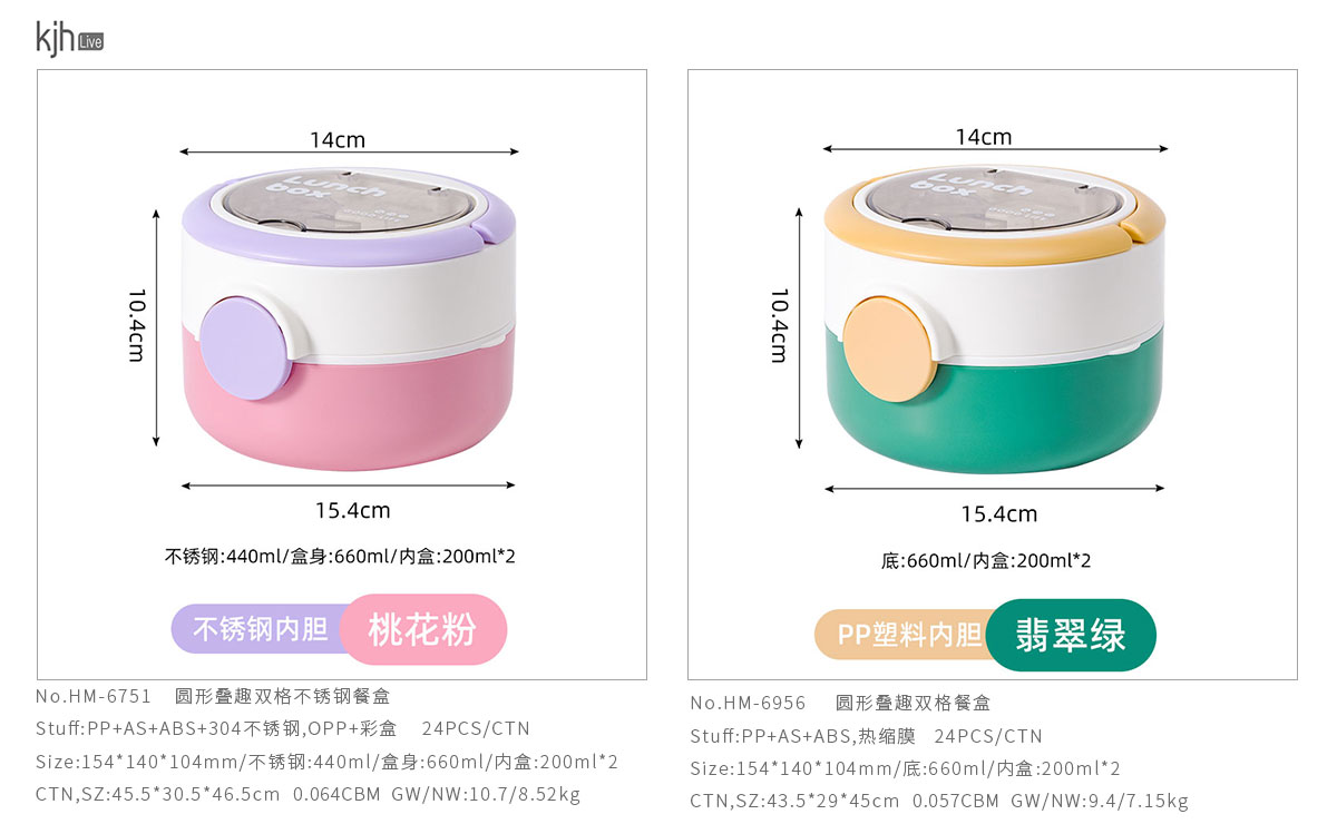 HM-6751(不銹鋼款):154*140*104mm/不銹鋼:440ml/盒身:660ml/內盒:200ml*2