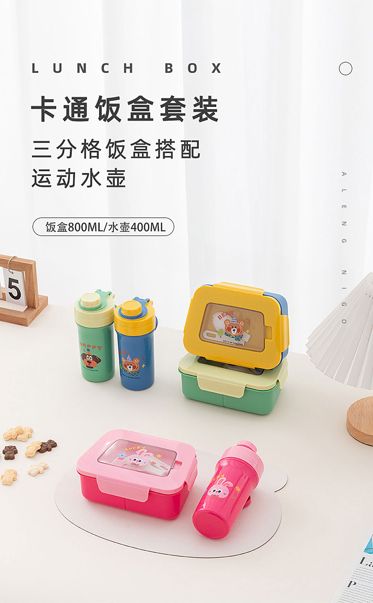 卡通三分格小飯盒/手提運(yùn)動水壺/飯盒水壺套裝