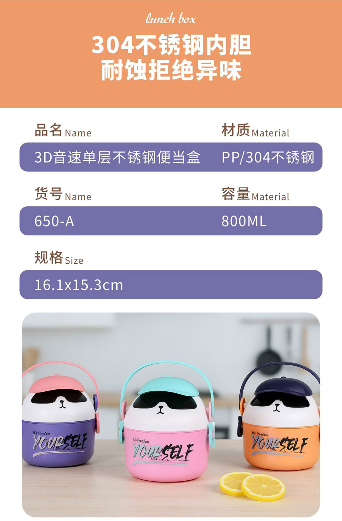 HJL-650A(單層):161*153mm/800ml