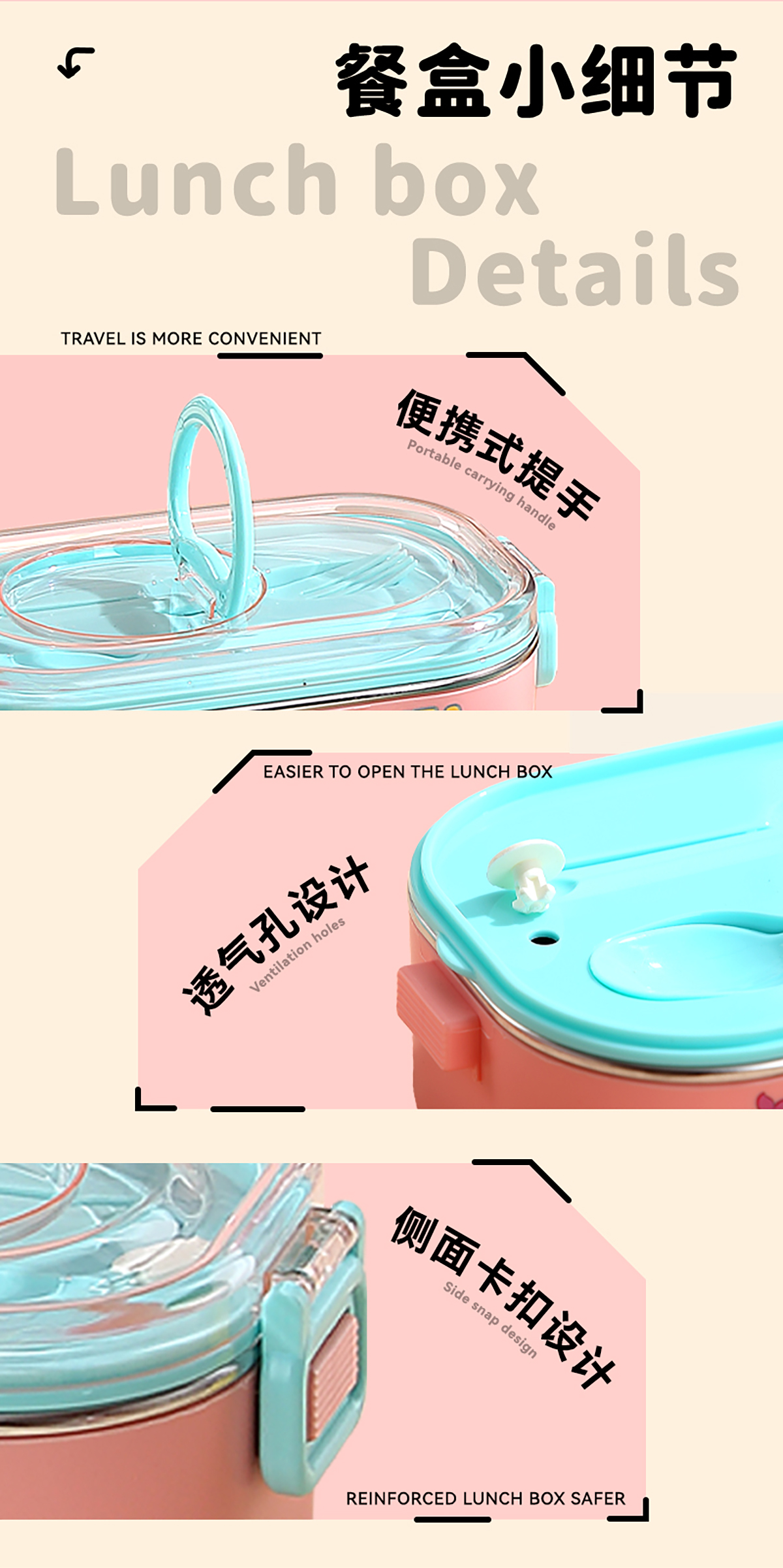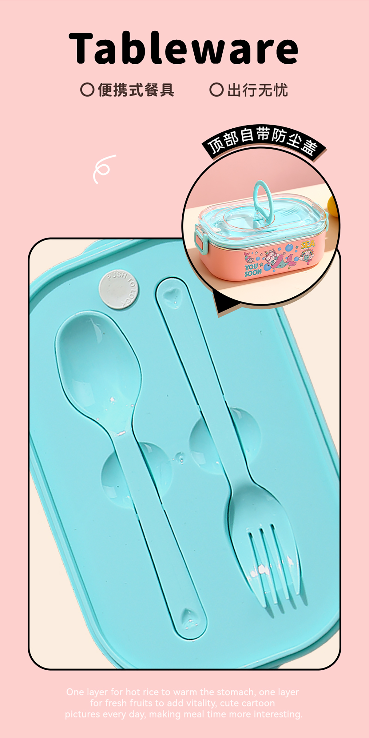 卡通手提密封不銹鋼餐盒(單格900ml/2格850ml+PP碗ml/2格850ml+不銹鋼碗150ml)