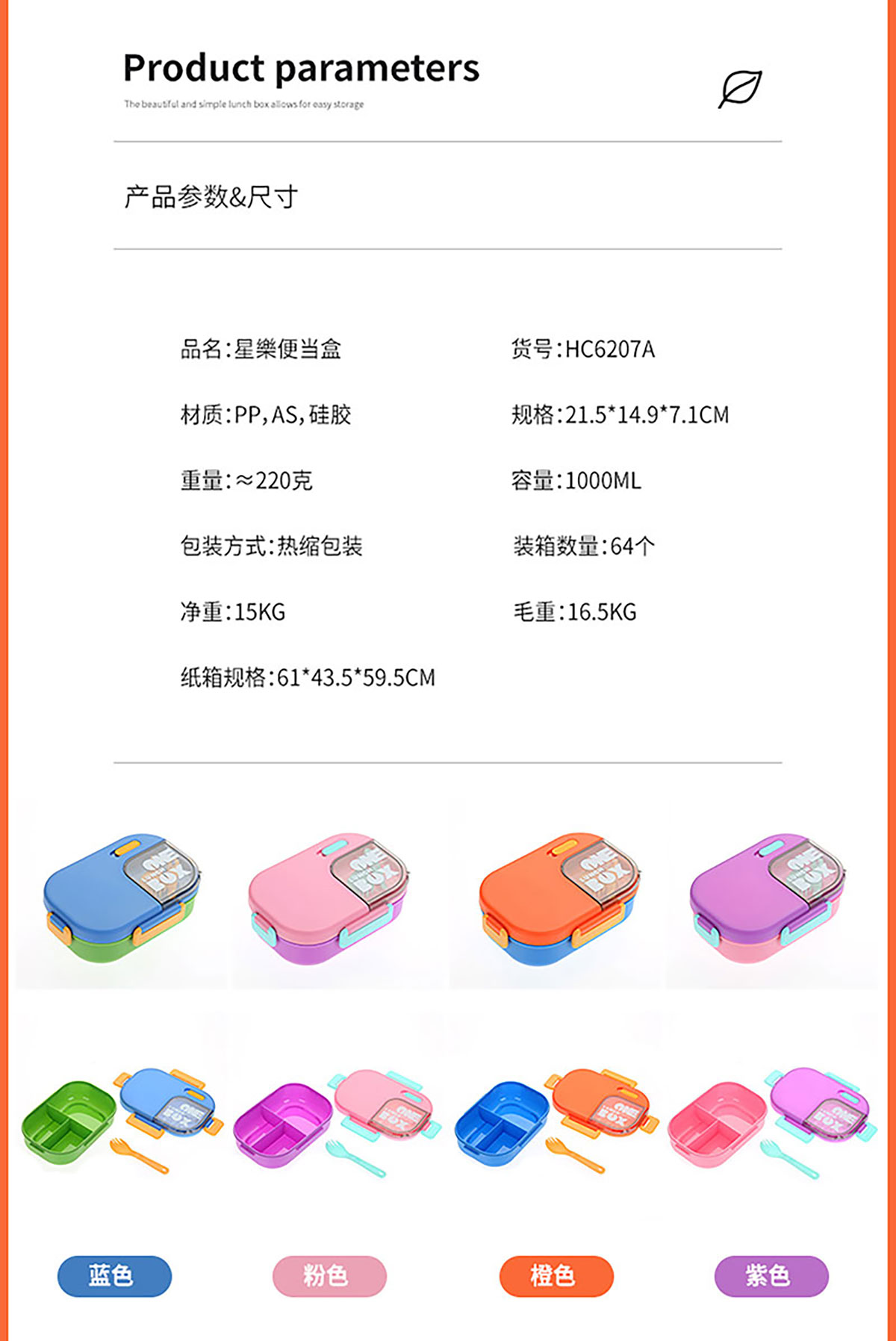 SWY-HC6207A(三格PP款):215*149*71mm/1000ml