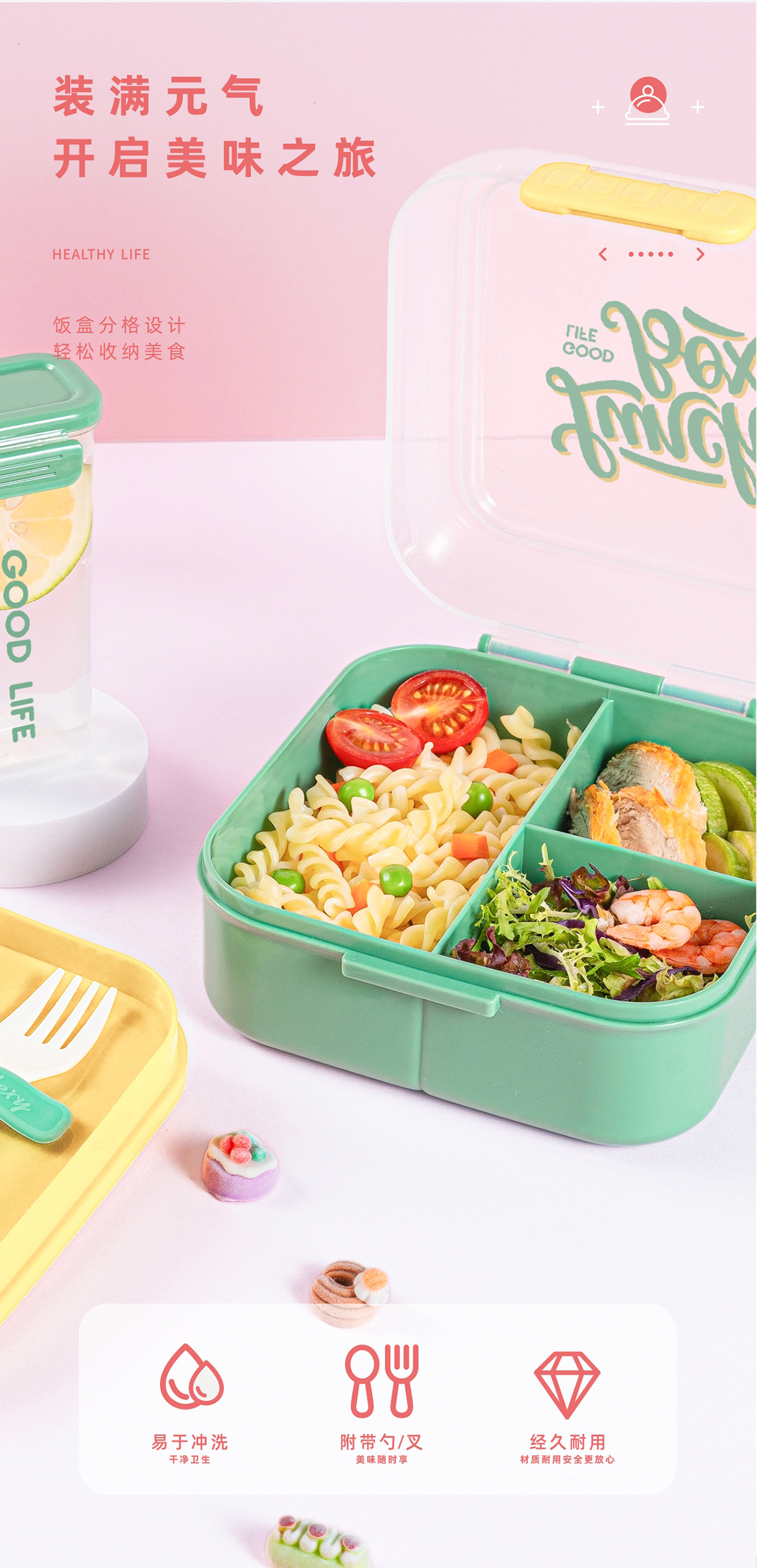 Size: 水杯:62*121mm 飯盒:180*165*97mm