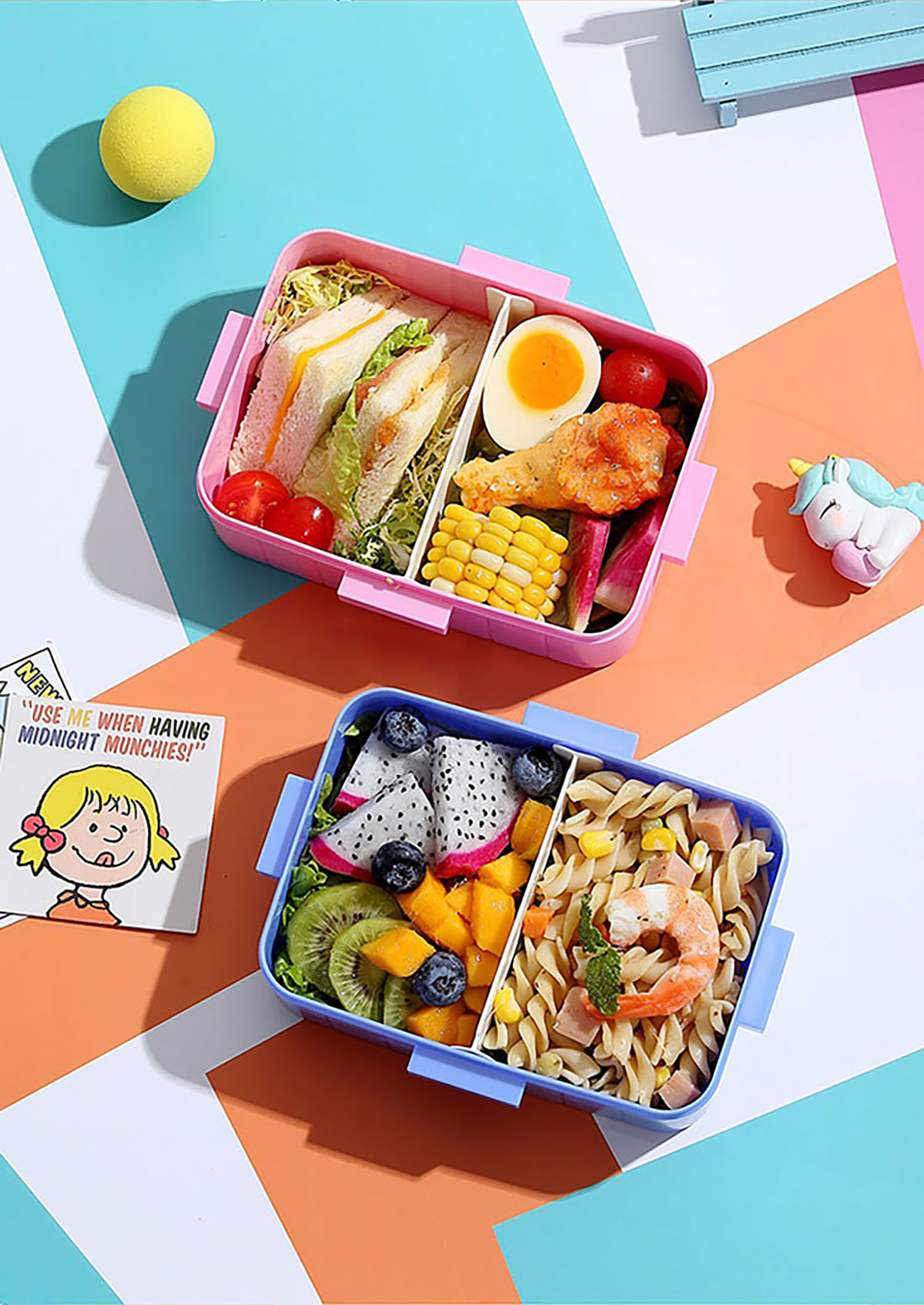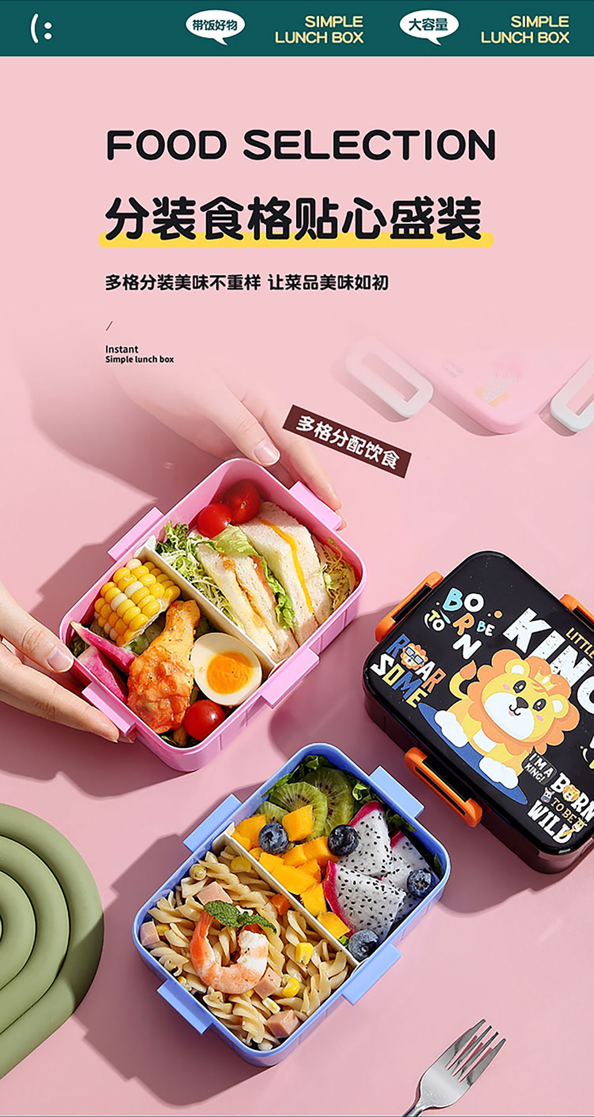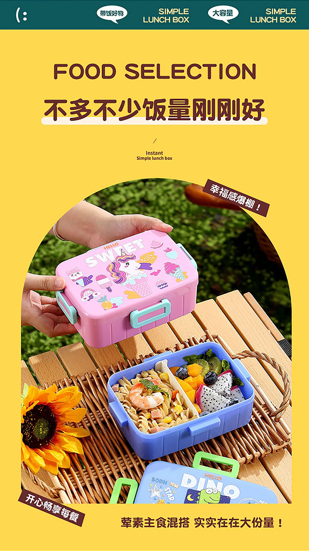 卡通方扣密封餐盒600ml+沙拉碗80ml+PP勺