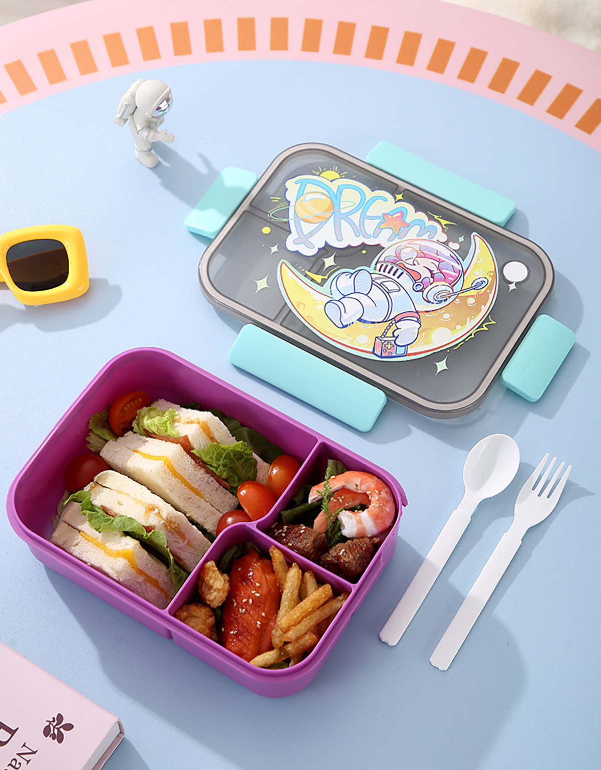 卡通透明蓋分格飯盒1450ml